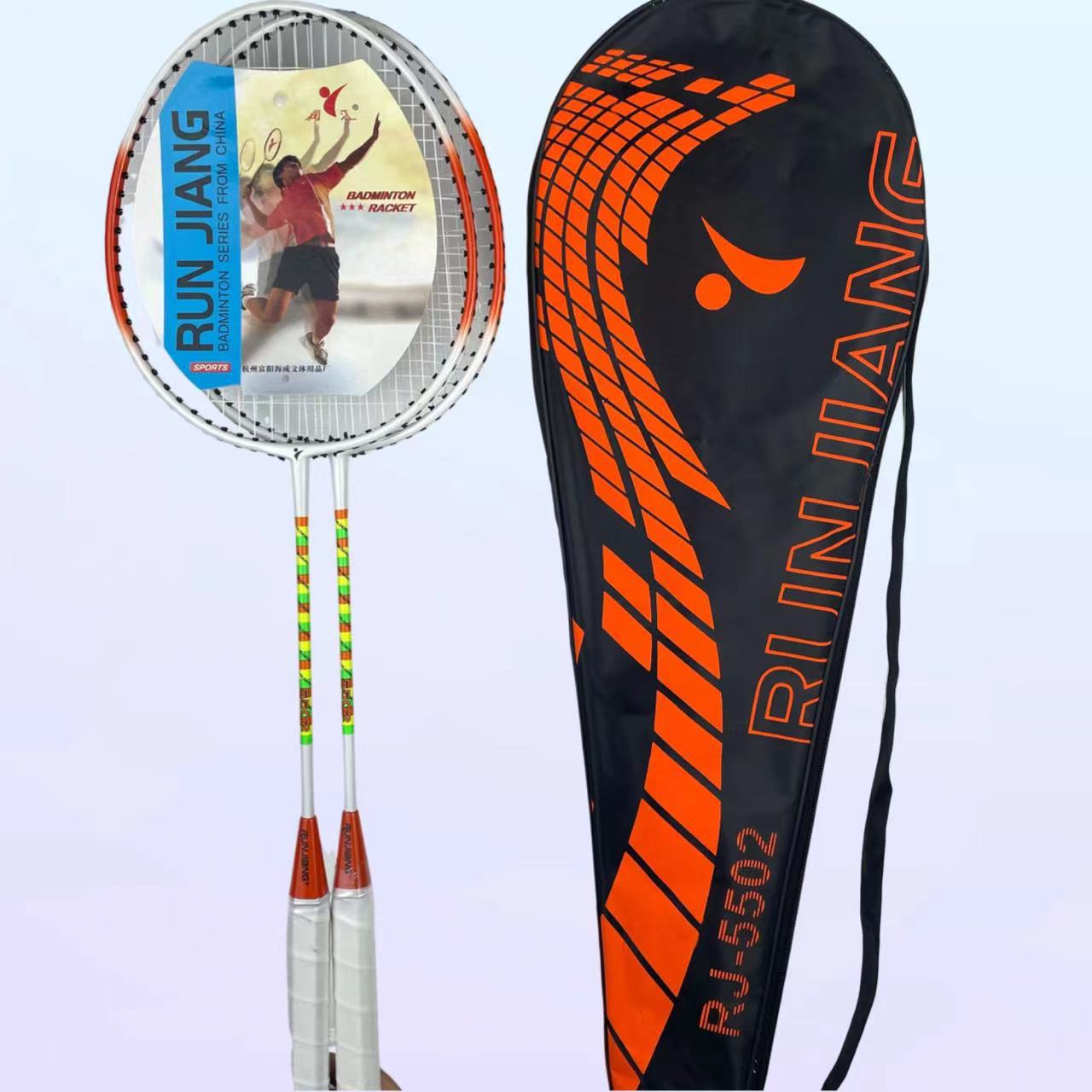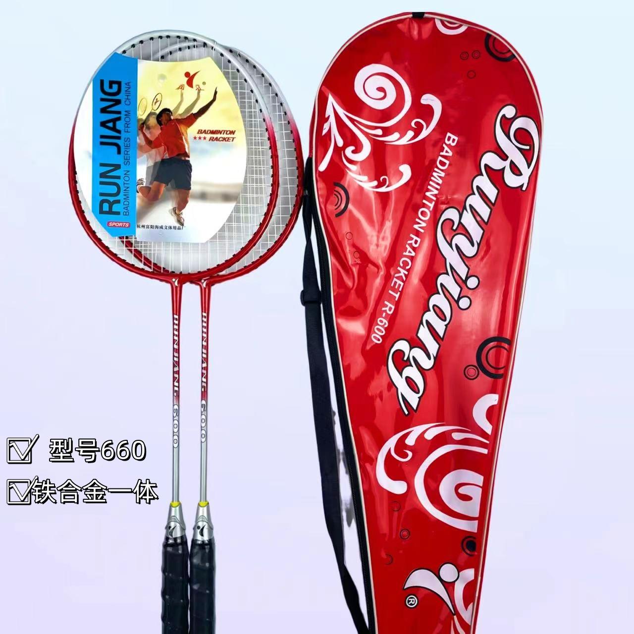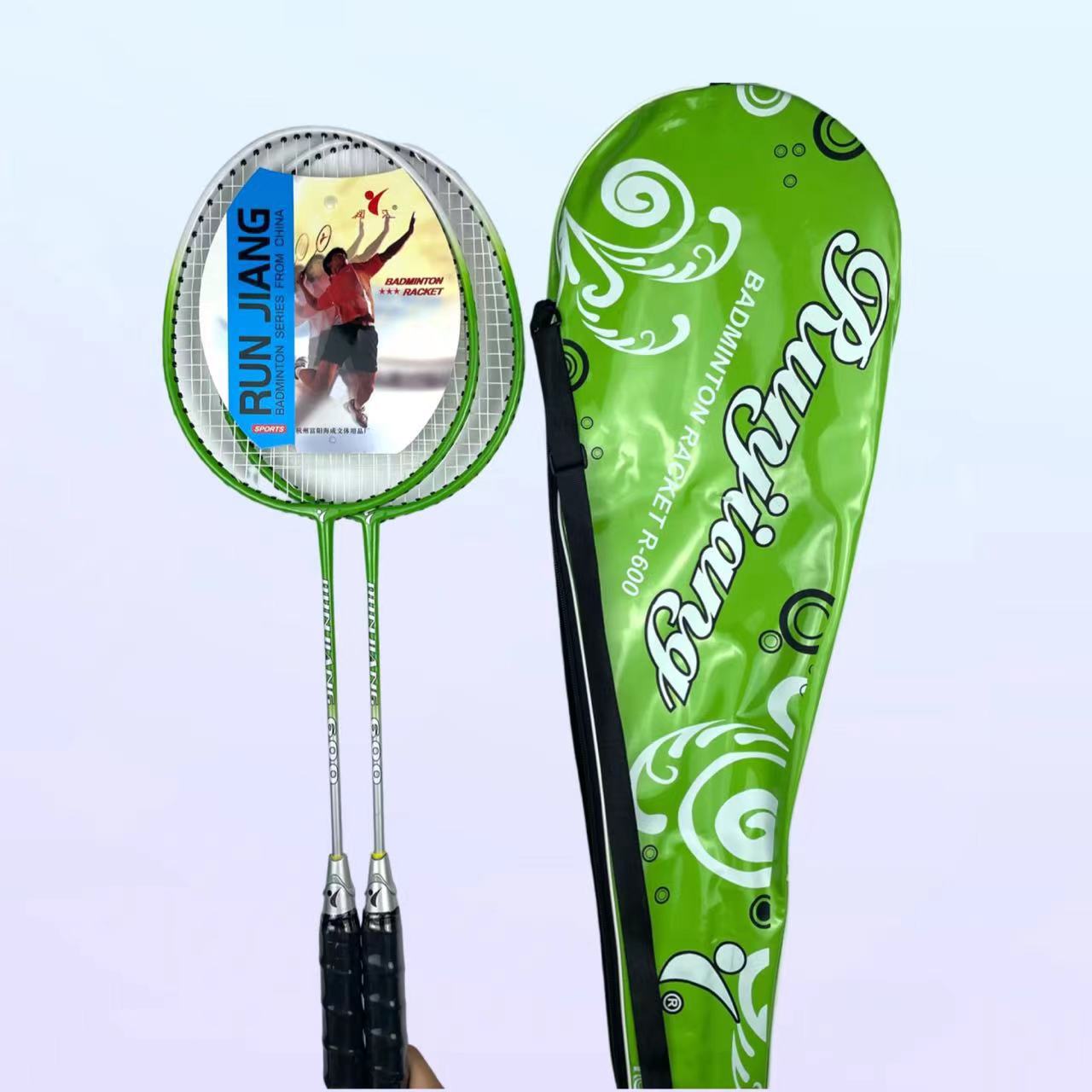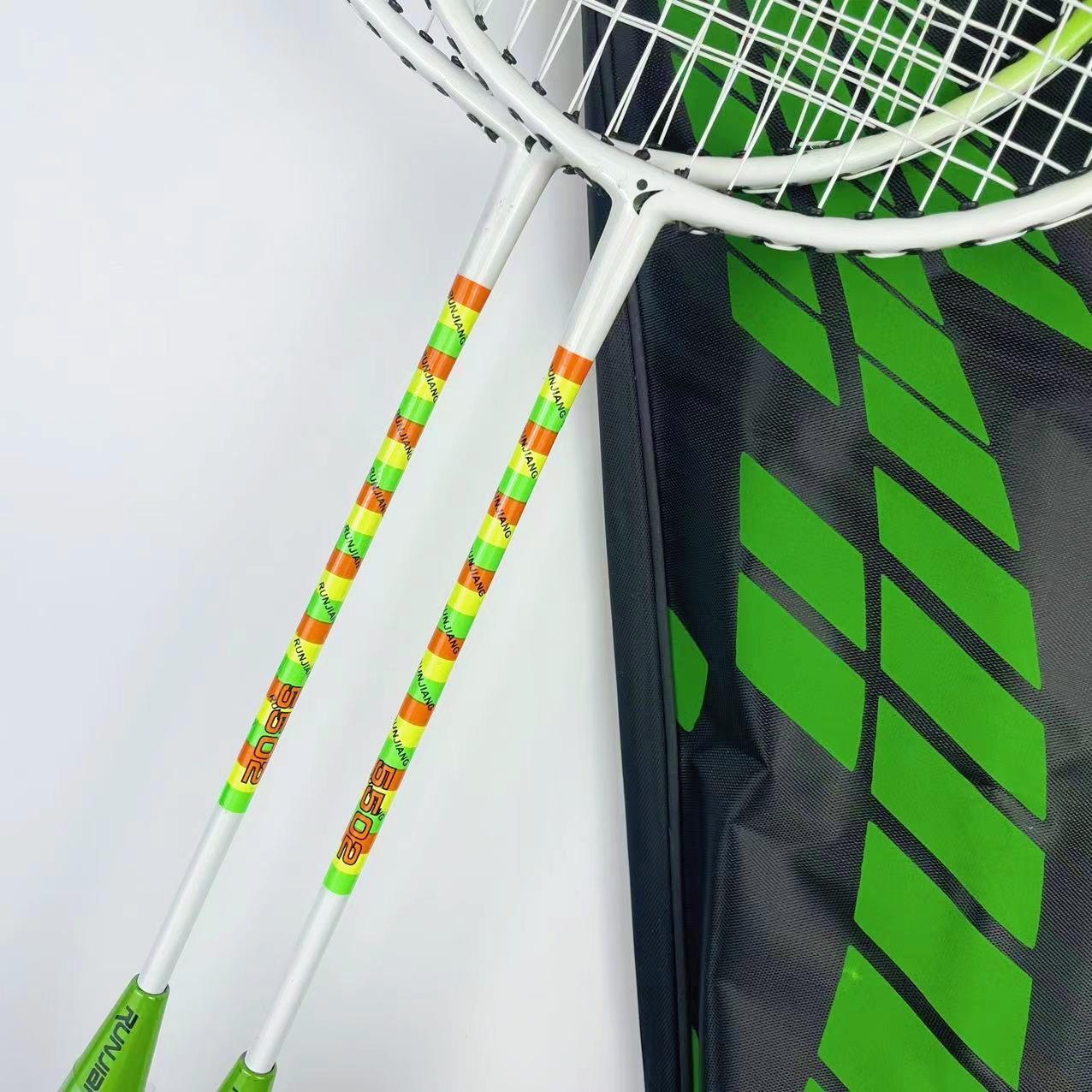 Raqueta de bádminton de aleación de aluminio y carbono con 2 bolas de esponja y mango de hierro de tacto cómodo, raqueta de plumas integrada para deportes y fitness.