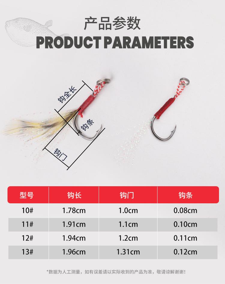 10 feather single hook, 11 feather single hook, 12 feather single hook, 13 feather single hook, No. 10 bright ...