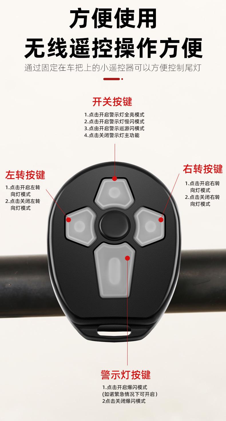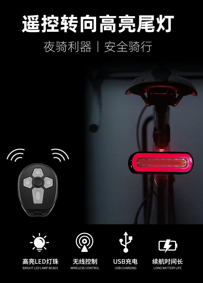Compra Luz trasera de giro para bicicleta, control remoto inalámbrico, carga USB, luz de advertencia para ciclismo nocturno, luz para equipo de conducción al por mayor en Joom.pro