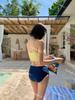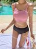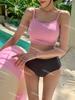 [4 colores] Nuevo traje de baño de estilo conservador para chicas, estilo retro, simple, dulce, con tirantes, para vacaciones, aguas termales, dividido para mujer