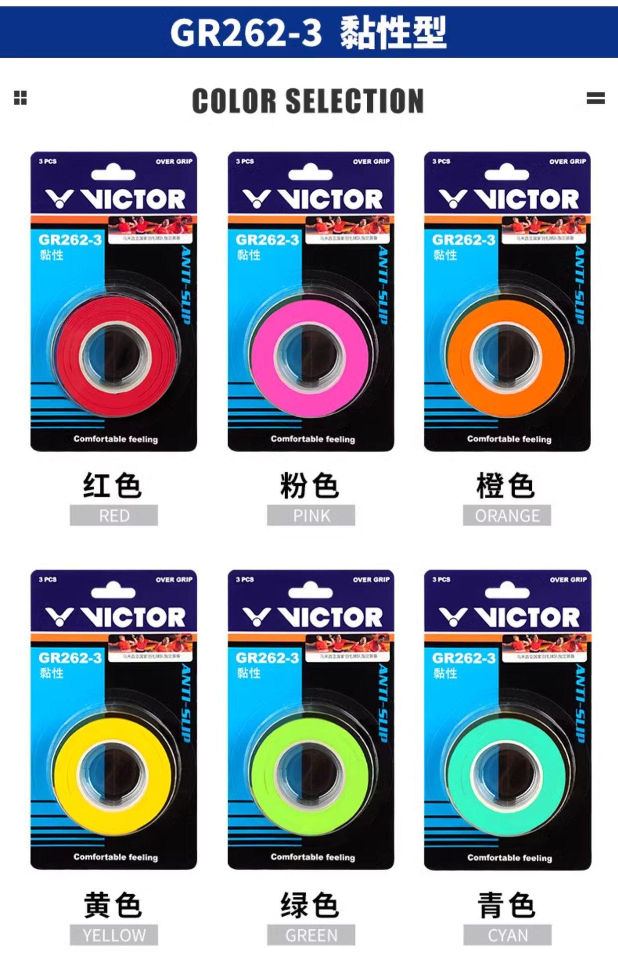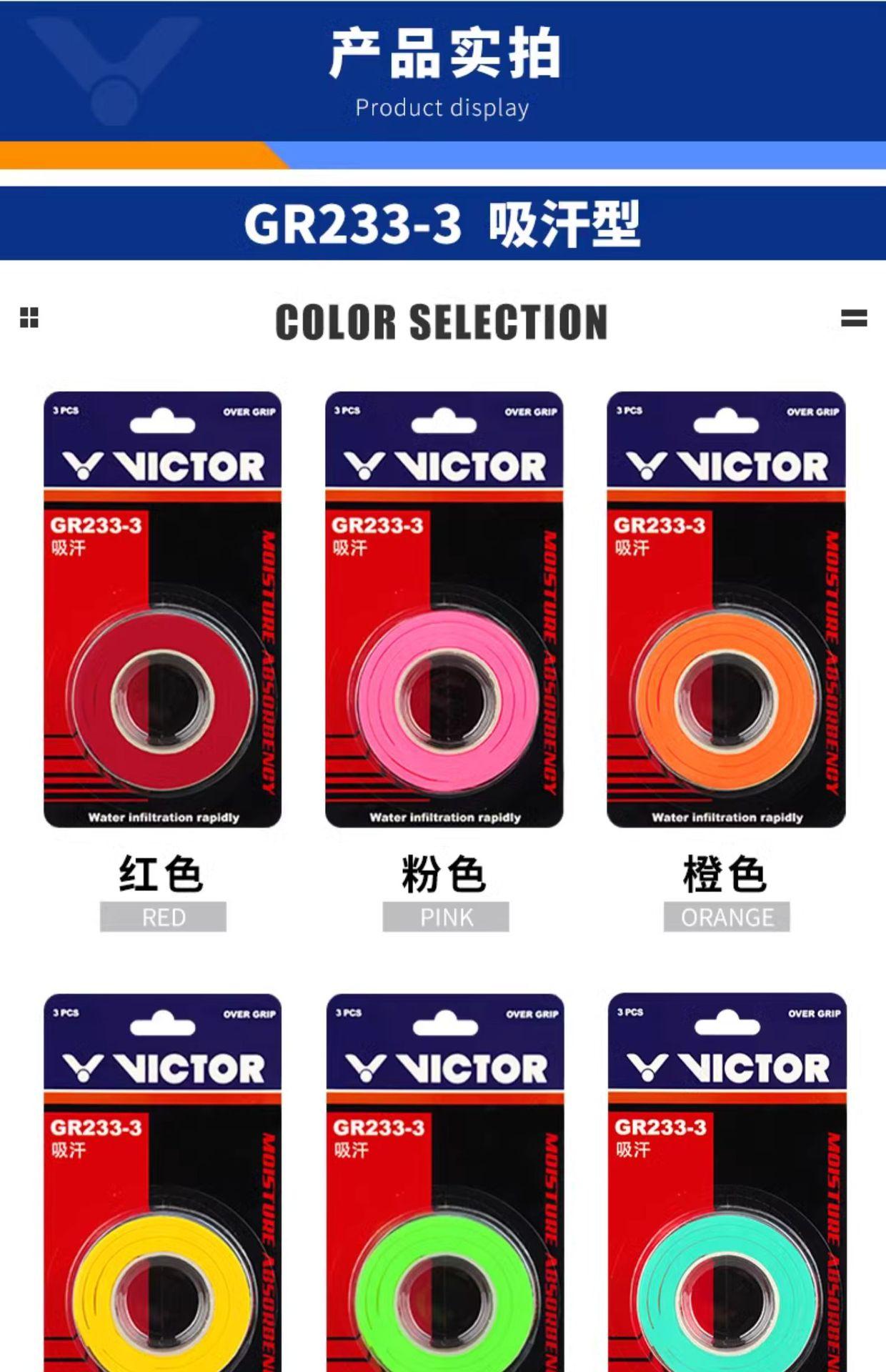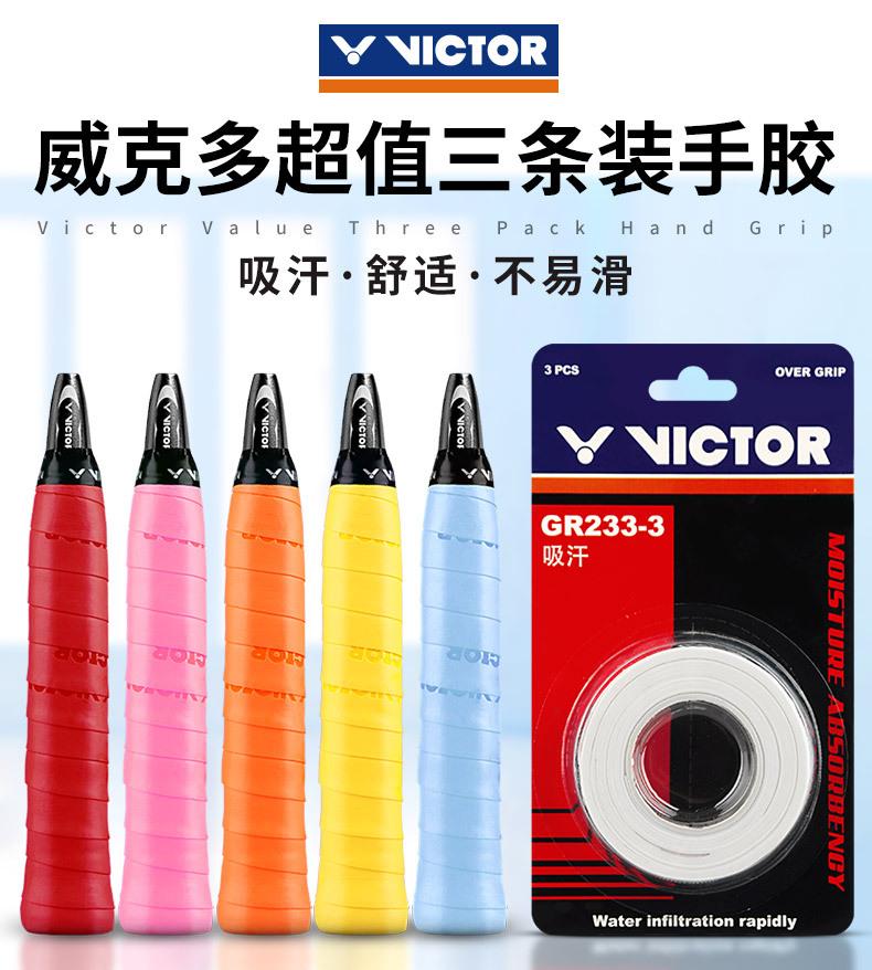 Correa de agarre para raqueta de bádminton Victor Victory, con pegamento para raqueta de tenis, absorbente de sudor y antideslizante, paquete de 3 GR233