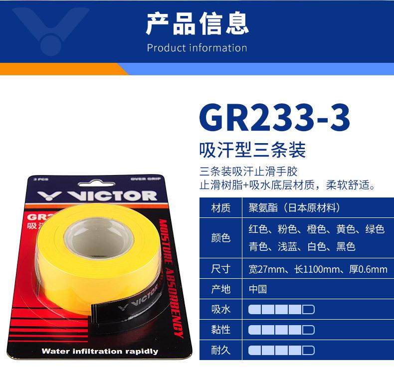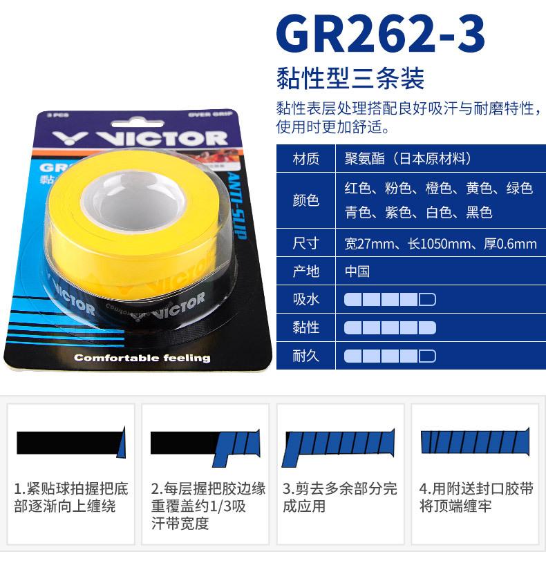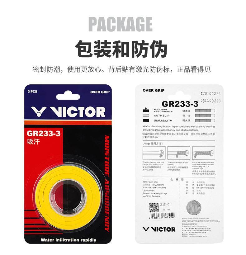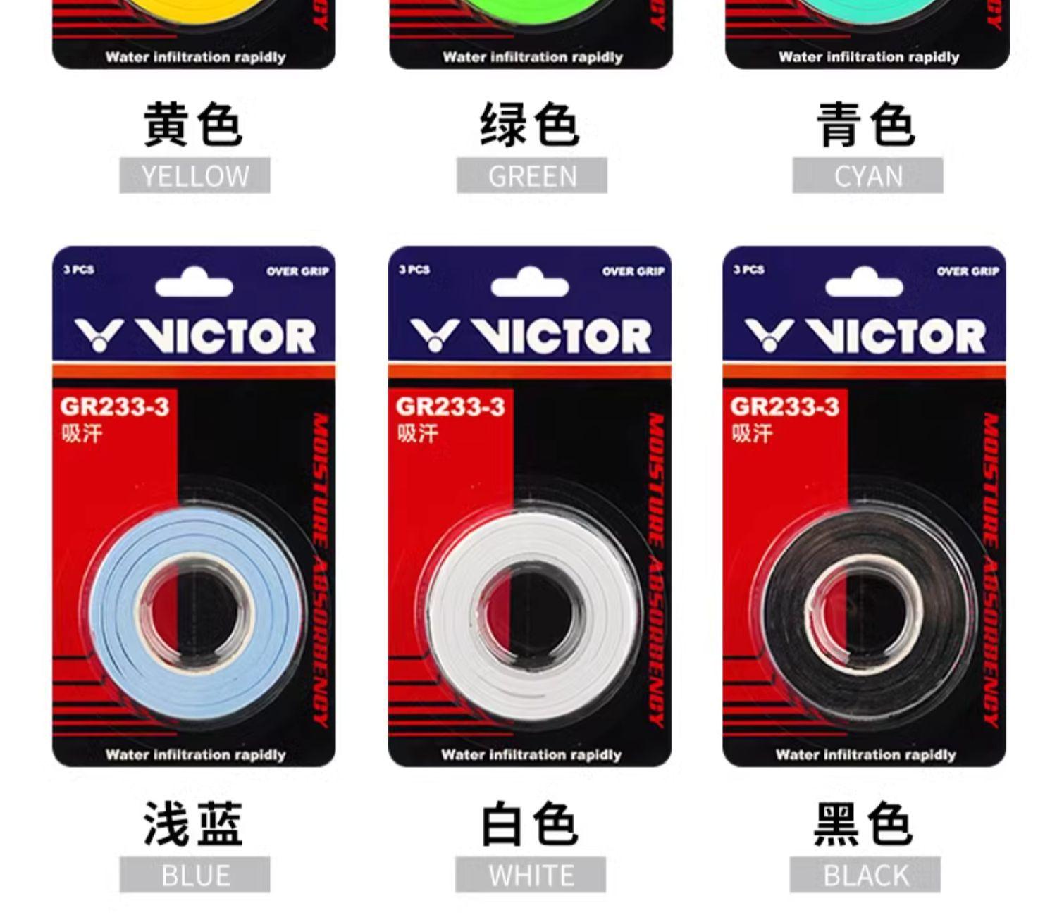 Correa de agarre para raqueta de bádminton Victor Victory, con pegamento para raqueta de tenis, absorbente de sudor y antideslizante, paquete de 3 GR233