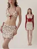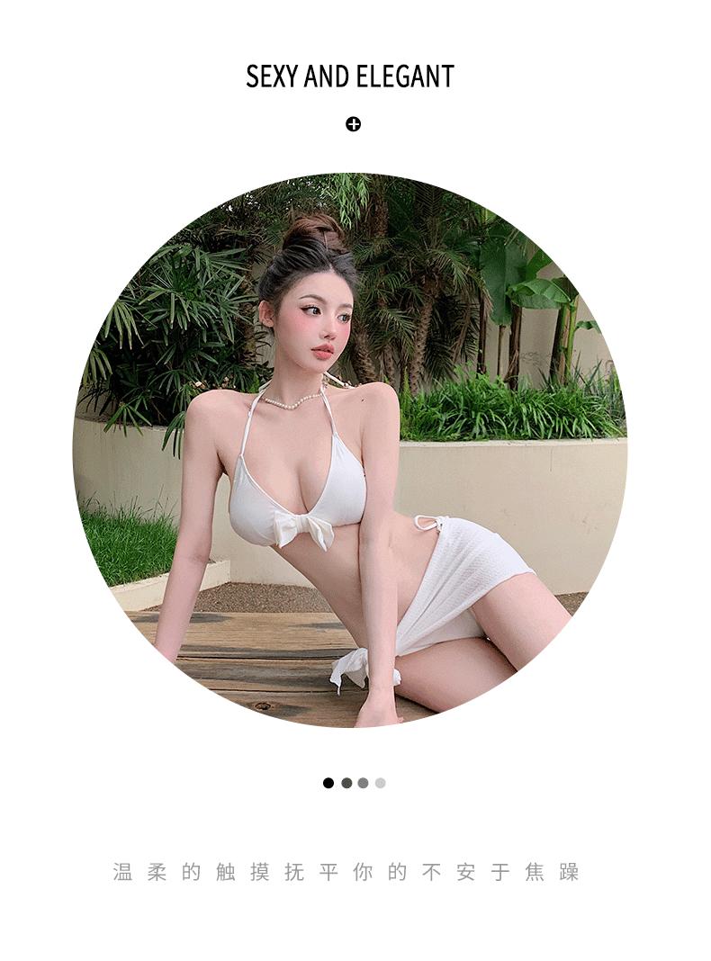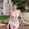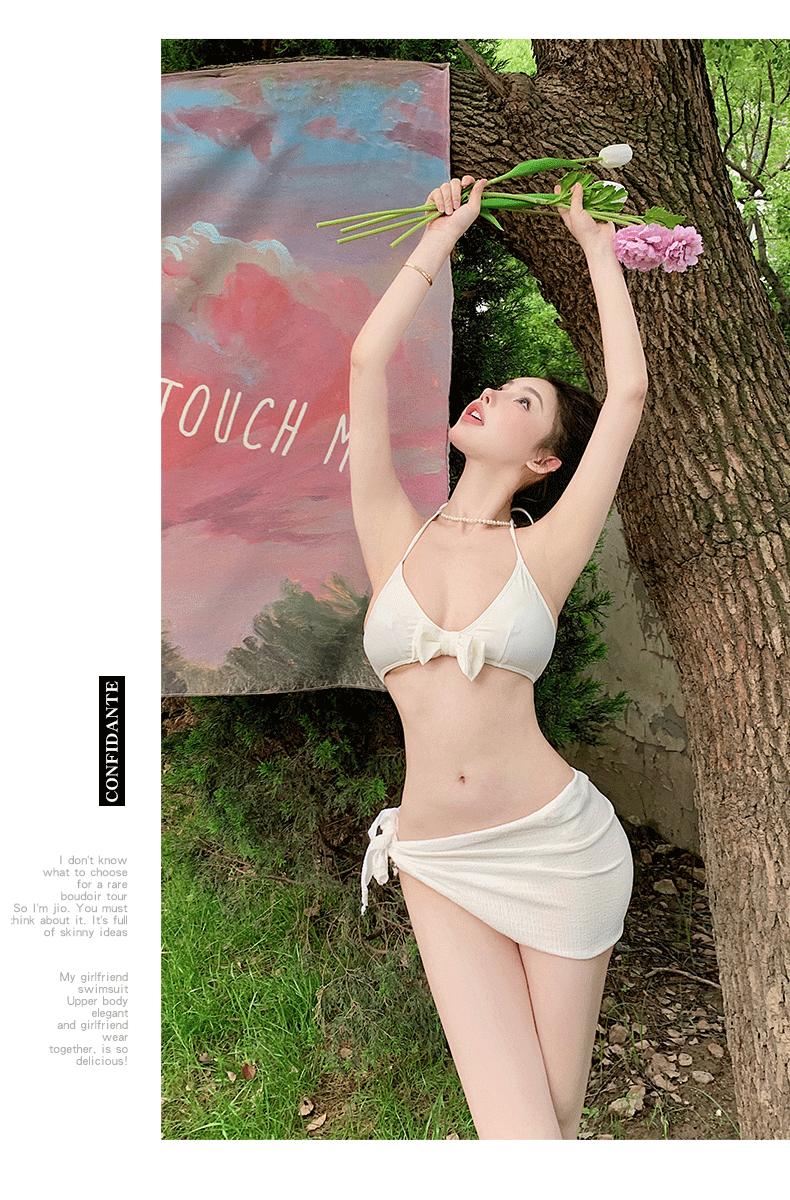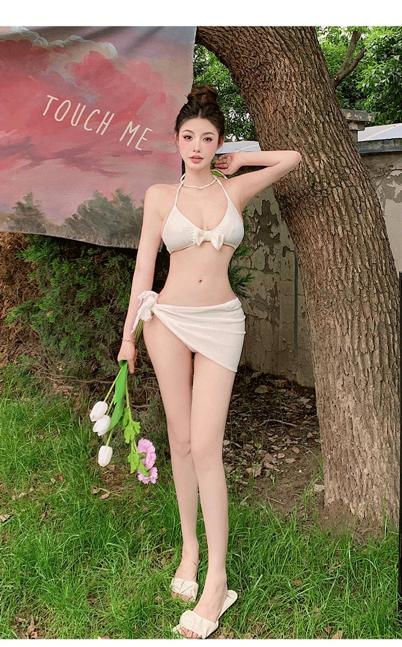 Conjunto de bikini sexy de tres piezas, bonito y dulce traje de baño con falda conservadora y abertura para mujer