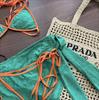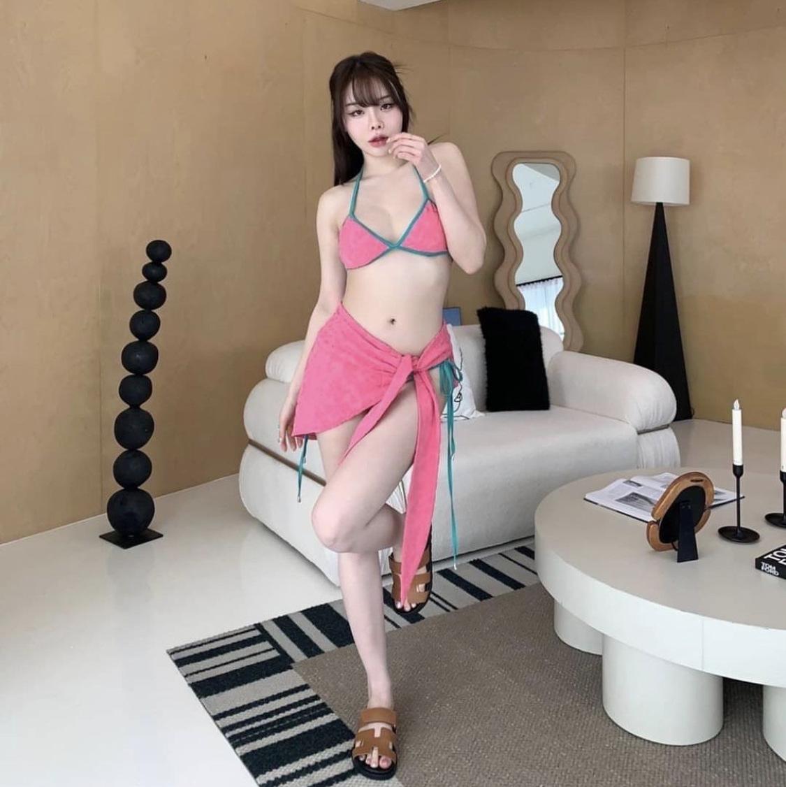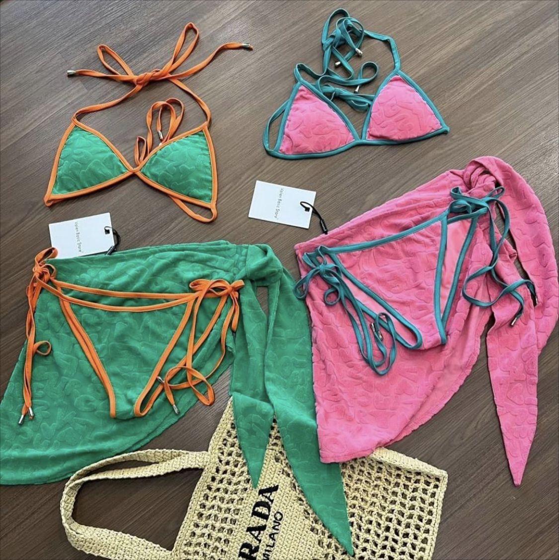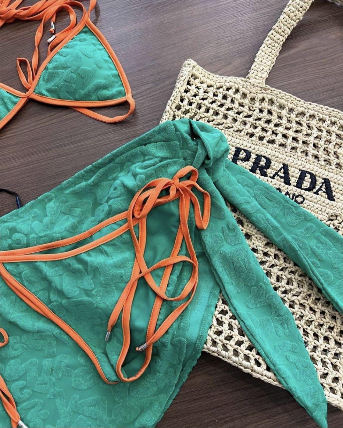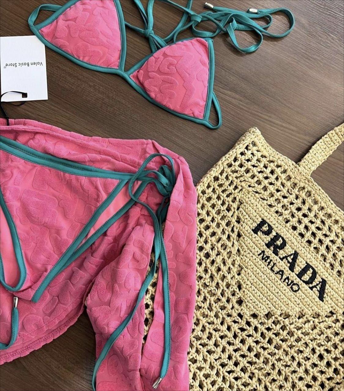Bikini conservador de tres piezas, ligero, lujoso, sencillo, fresco, dulce y bonito para chica, con tejido especial y contraste de color.