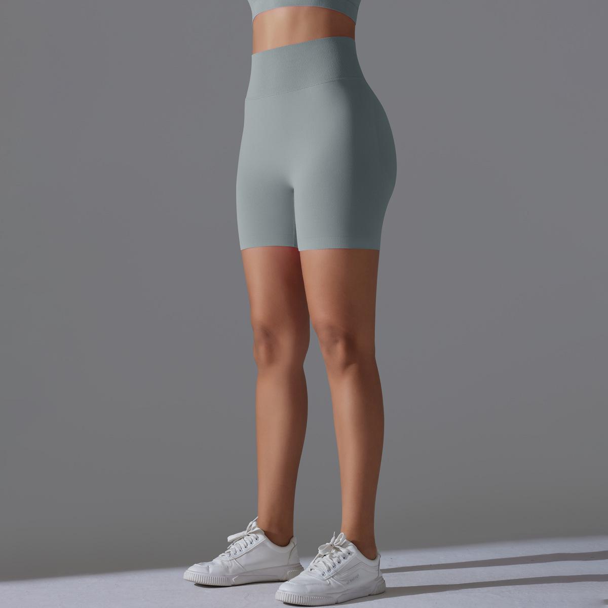 Pantalones cortos de yoga de color sólido sin costuras, ajustados, para correr, fitness, cintura alta, color melocotón, transfronterizos europeos y americanos