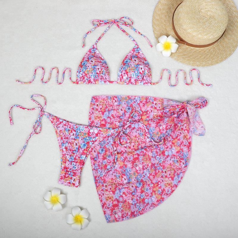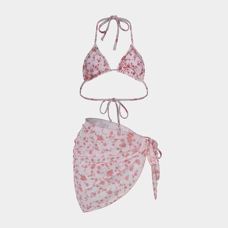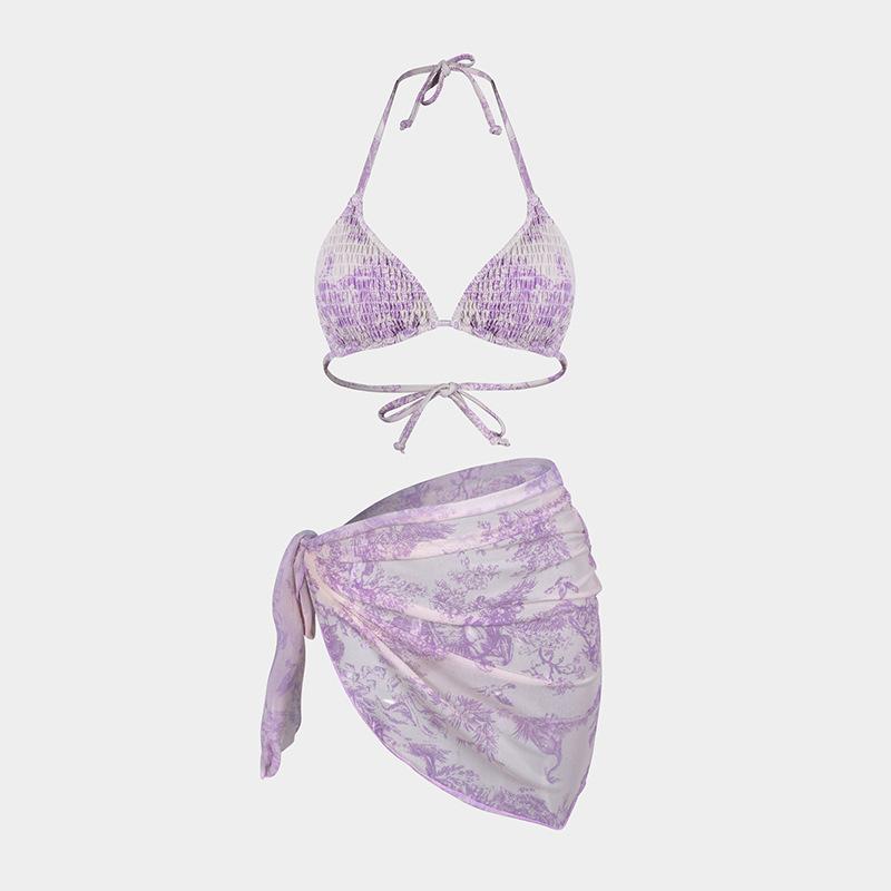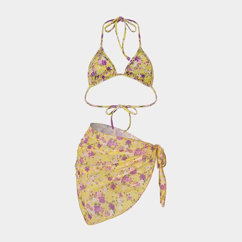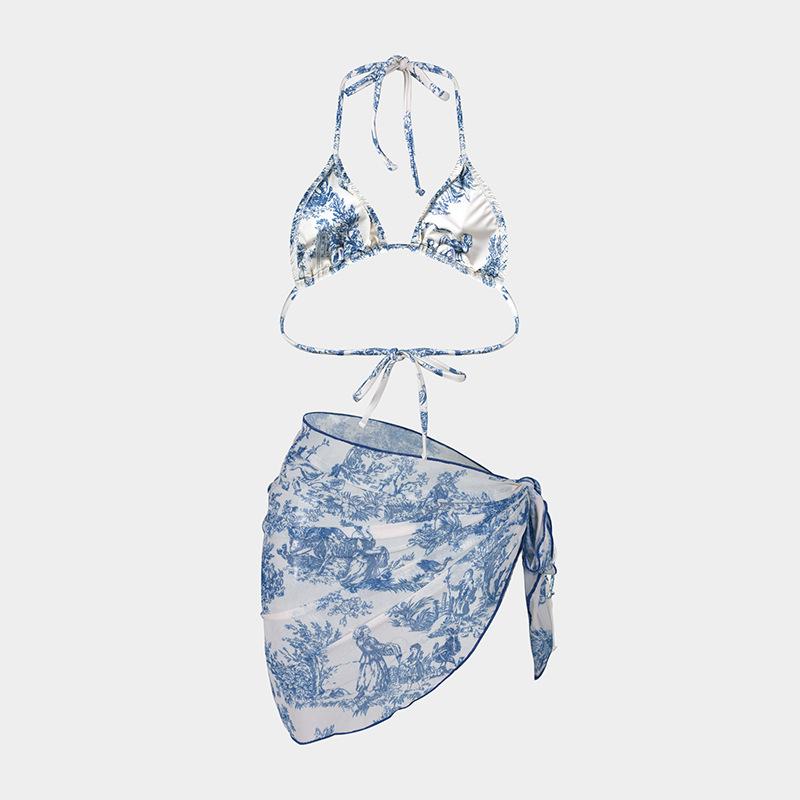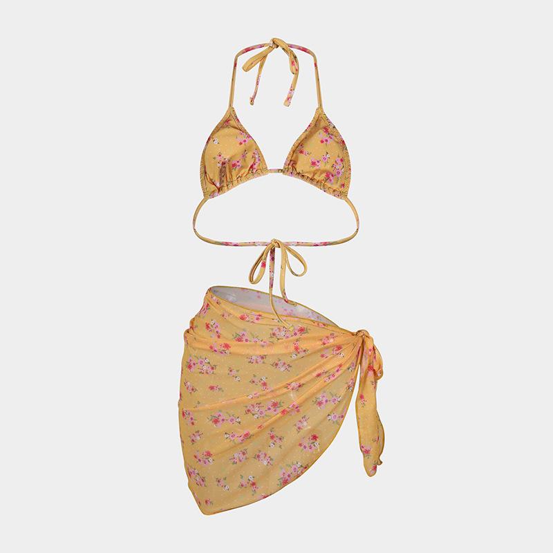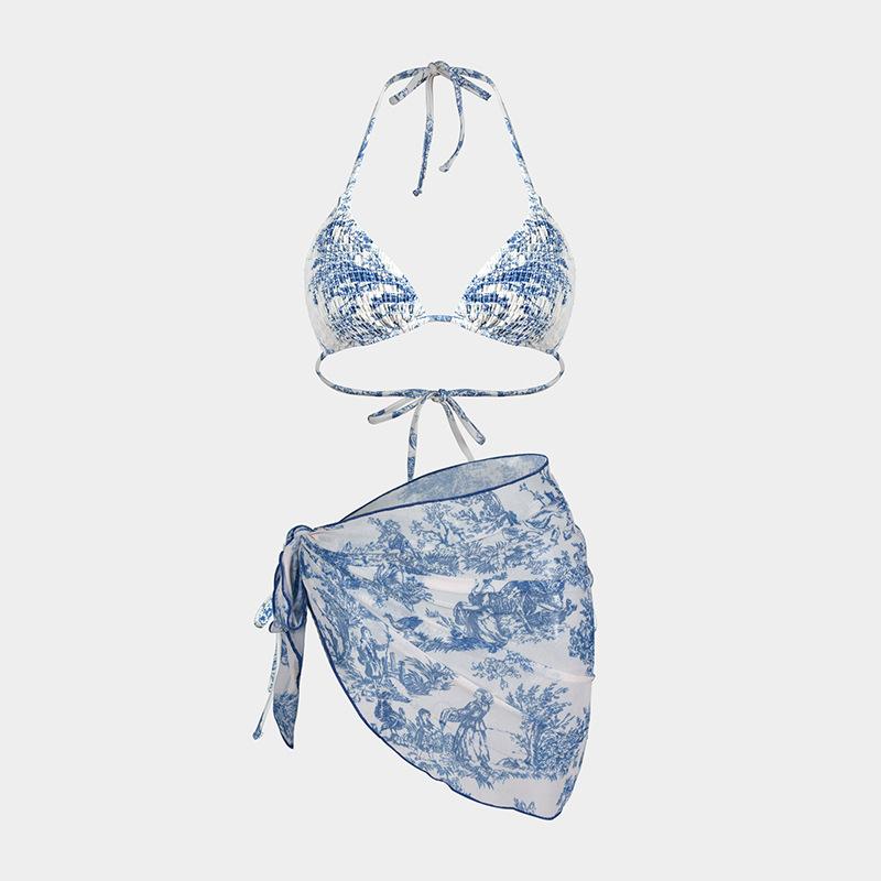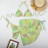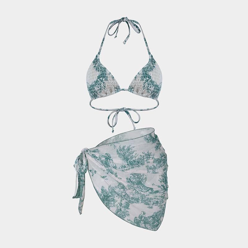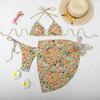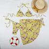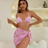 Bikini estampado europeo y americano de tres piezas, cruzado, falda de gasa transfronterizo, sexy, traje de baño bikini de vacaciones dividido