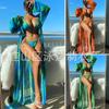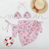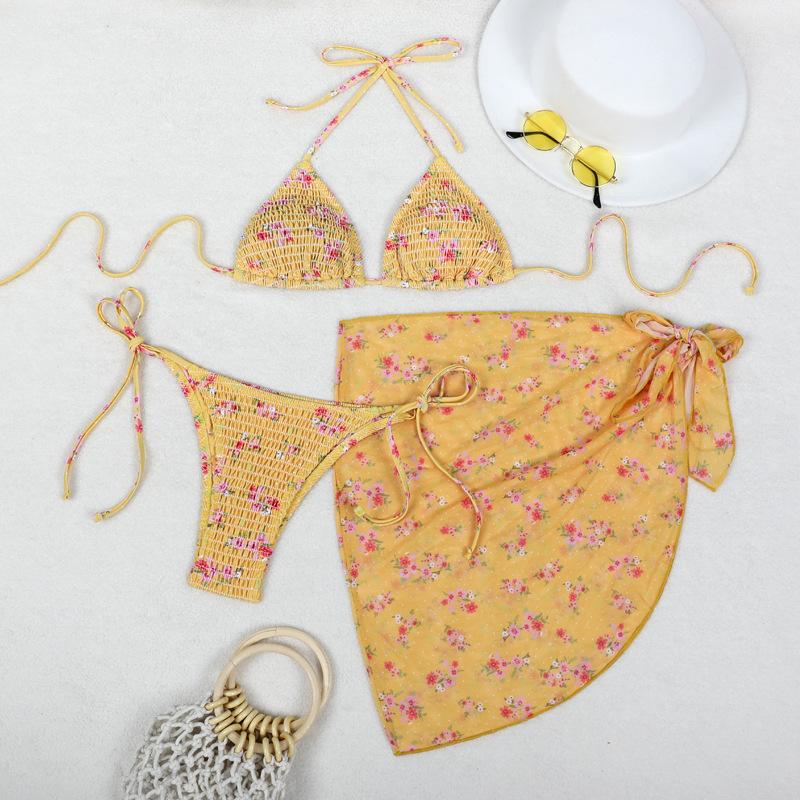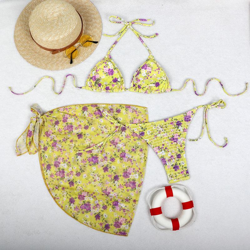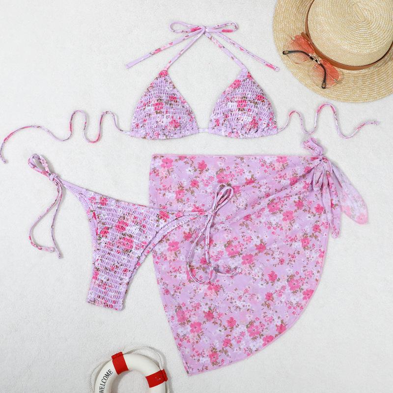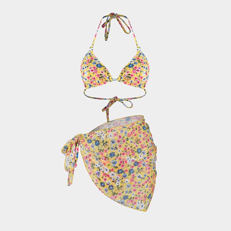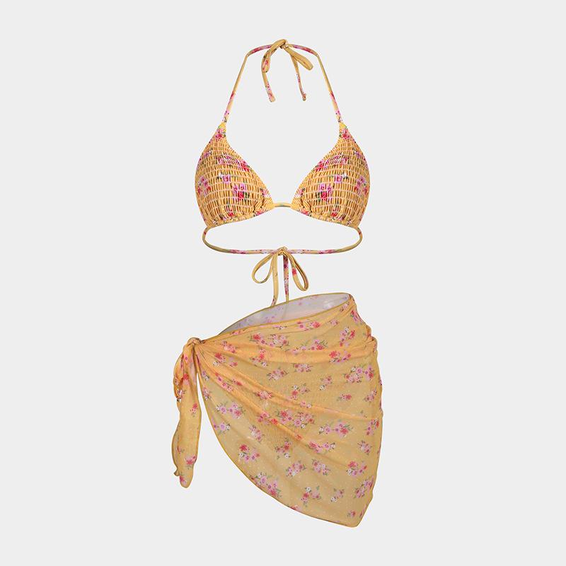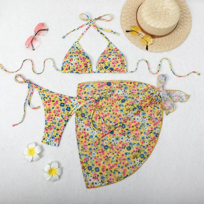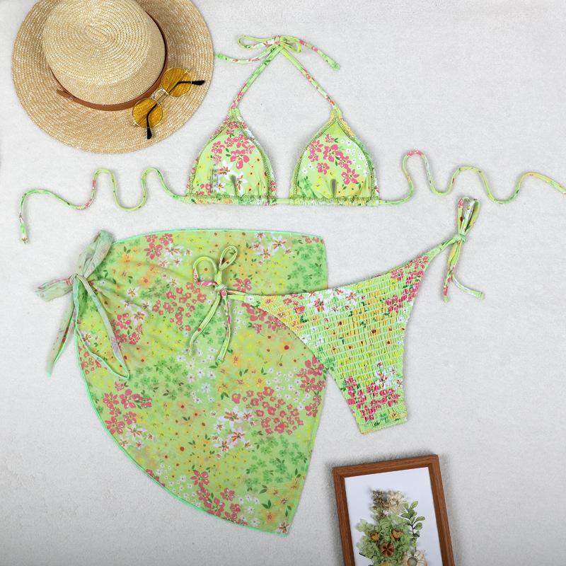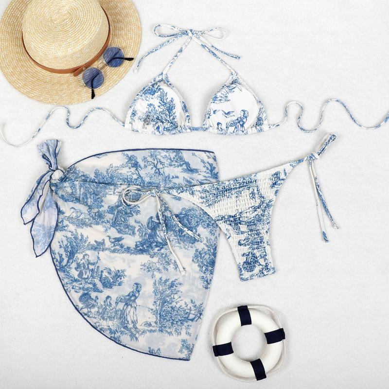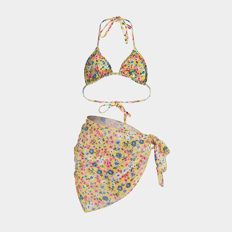 Bikini estampado europeo y americano de tres piezas, cruzado, falda de gasa transfronterizo, sexy, traje de baño bikini de vacaciones dividido