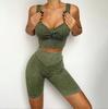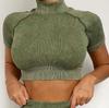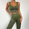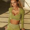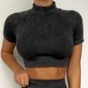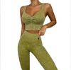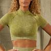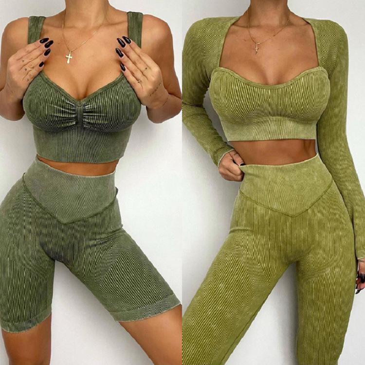 Traje de yoga sin costuras para mujer, de manga larga, con ribete de canalé y pantalones de cintura alta, estilo deportivo, lavado de arena, Spot INS Cross-border