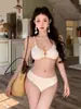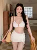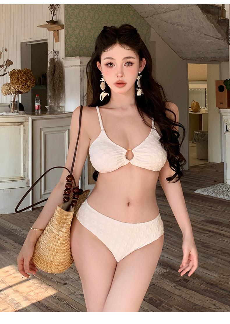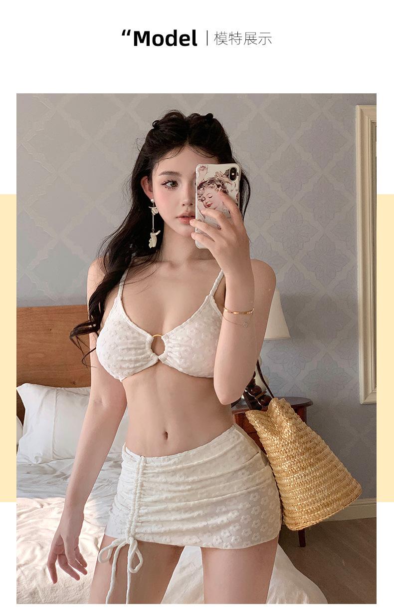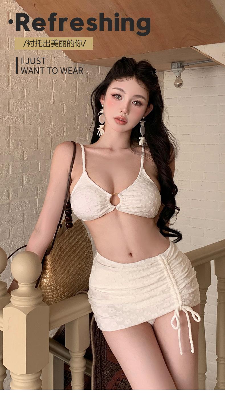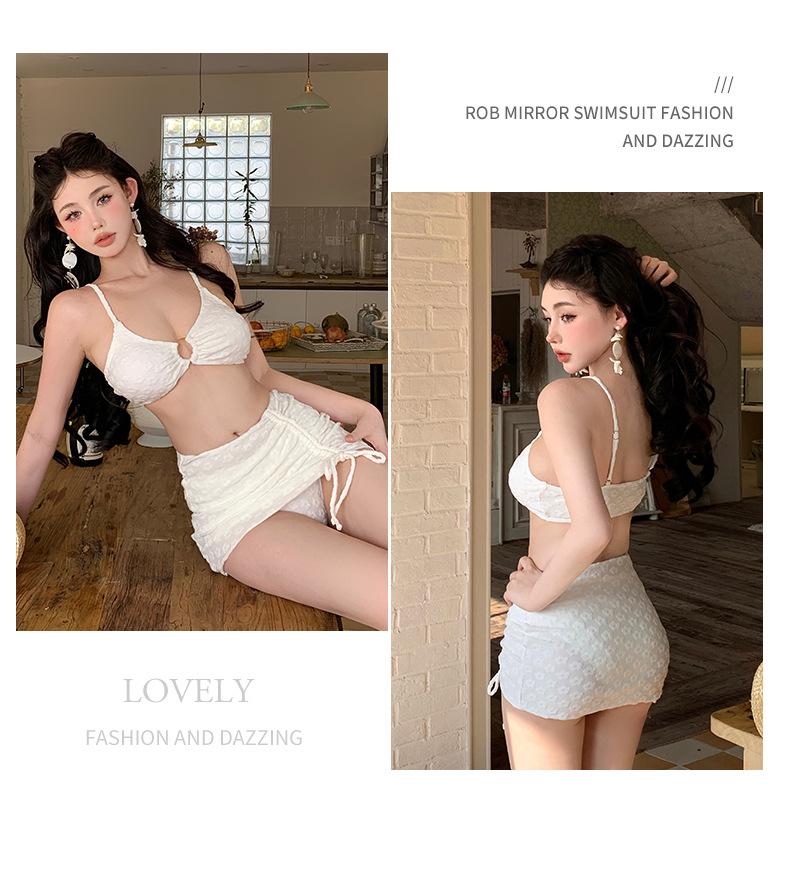 Bikini de tres piezas para mujer, ligero, de lujo, sencillo, puro, estilo dulce, tridimensional, con estampado floral, falda conservadora.