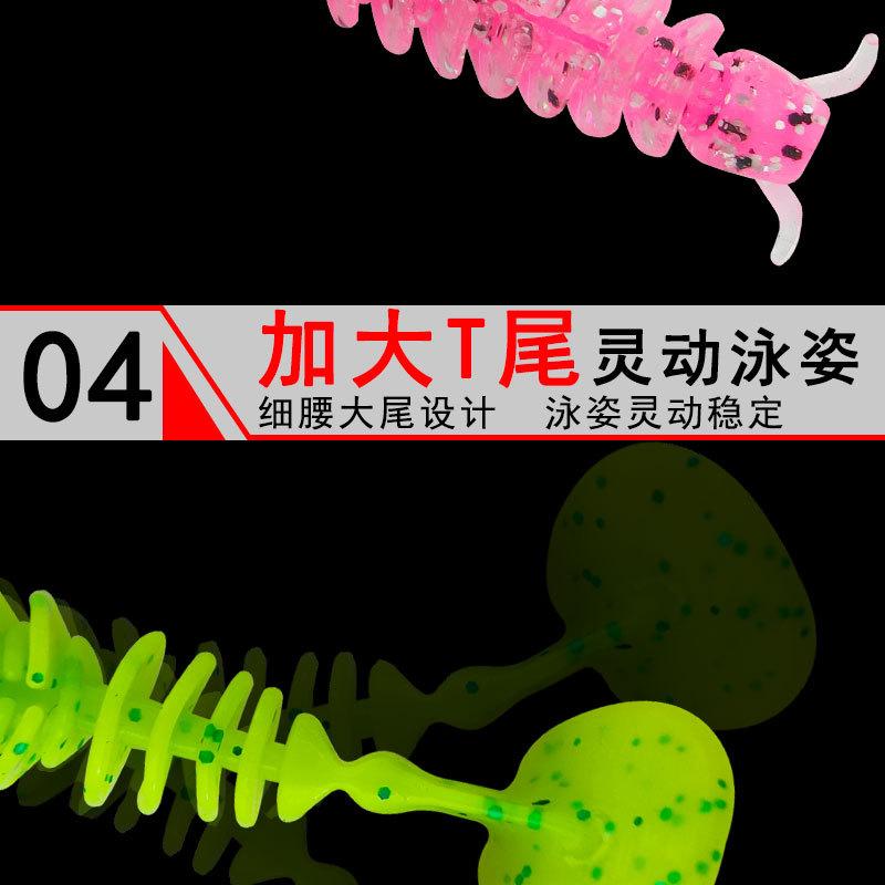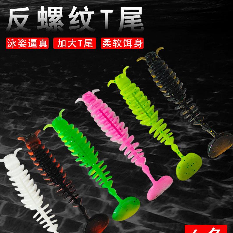 Cebo blando con cola en T y rosca invertida, anzuelo con microraíz, cebo blando para insectos, pez mandarín, luya, pico de lubina, pez pequeño, cebo falso con cola en T, venta al por mayor