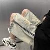 Pantalones cortos vaqueros amarillos con diseño de barro para hombre, estilo vintage americano de verano, con cremallera y diseño moderno de calle.
