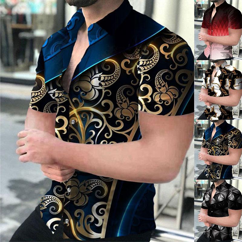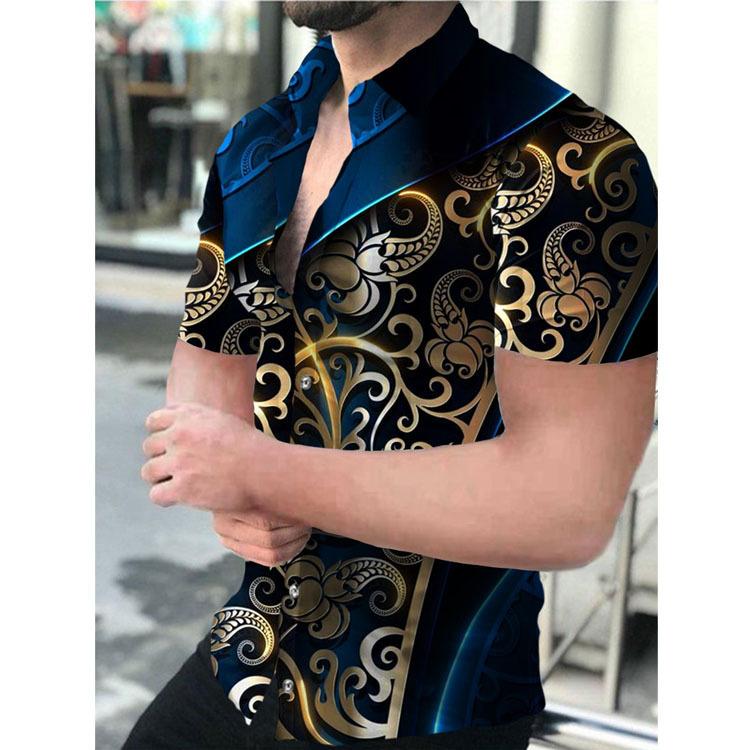 Camisa de manga corta con estampado casual de moda para hombre, de Amazon AliExpress 2023, un punto de interés transfronterizo de verano
