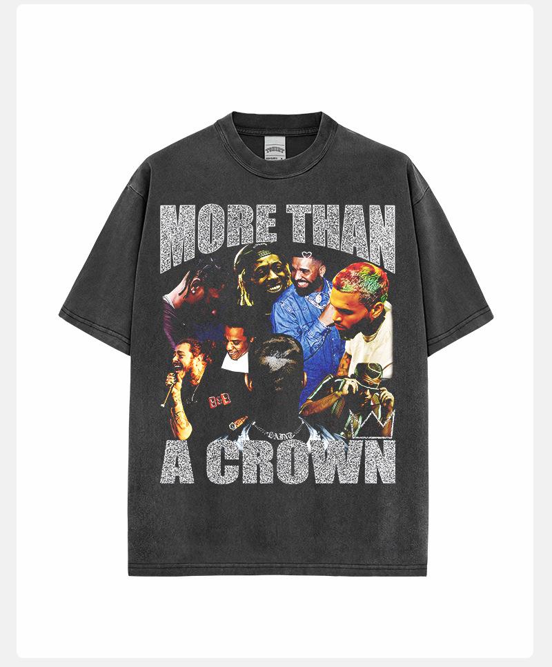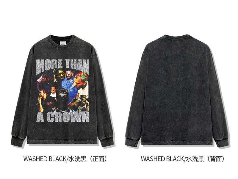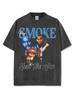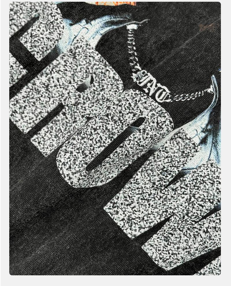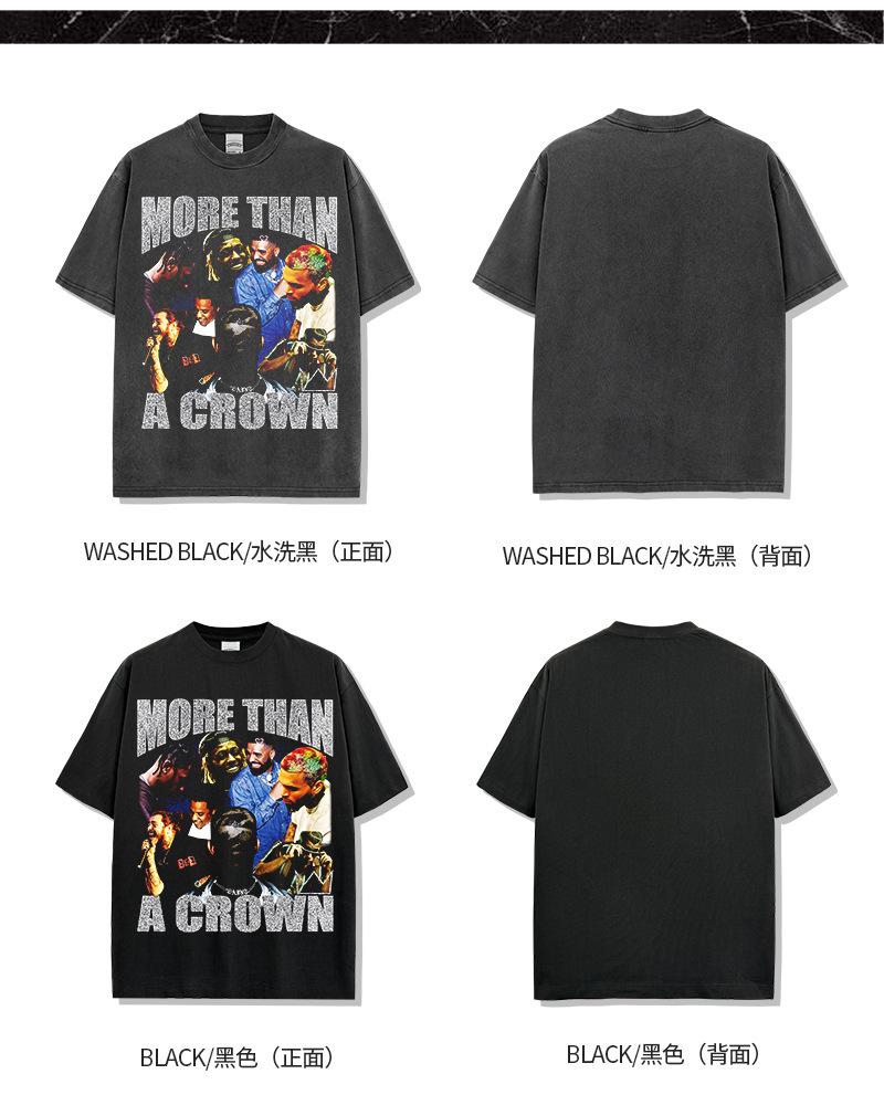 Camiseta Retro Hip-hop Estampada Transfronteriza Americana Vintage Lavada Vieja Suelta Peso Pesado Cuello Redondo Casual Manga Corta
