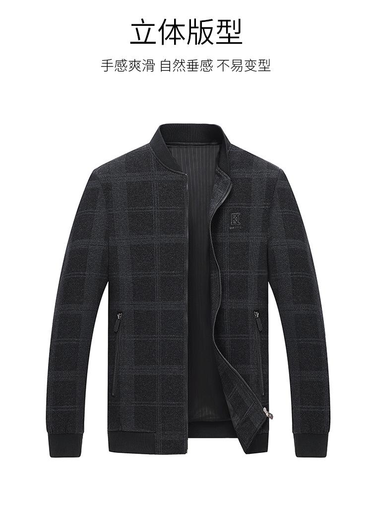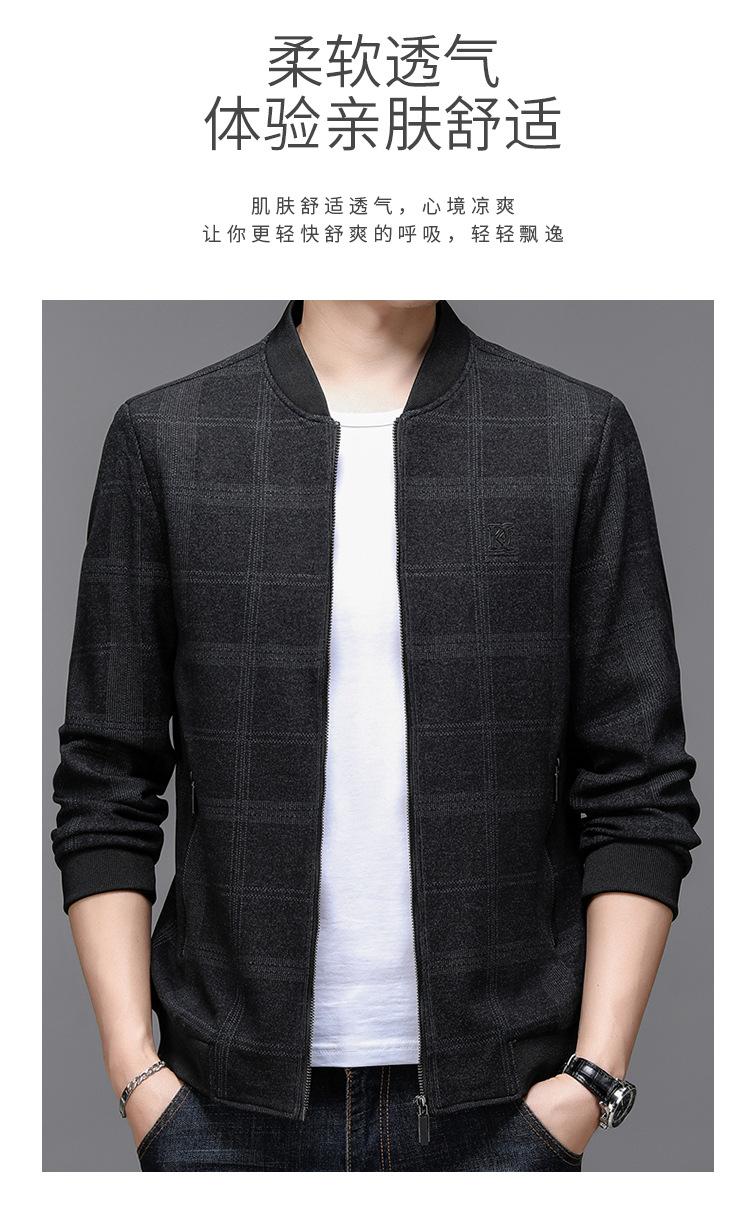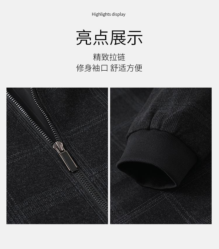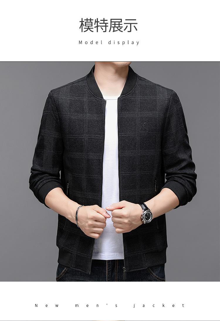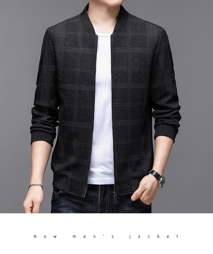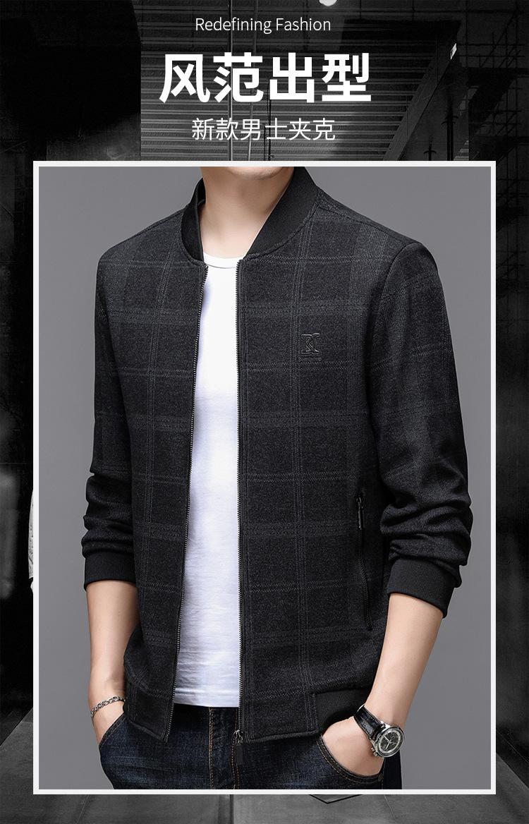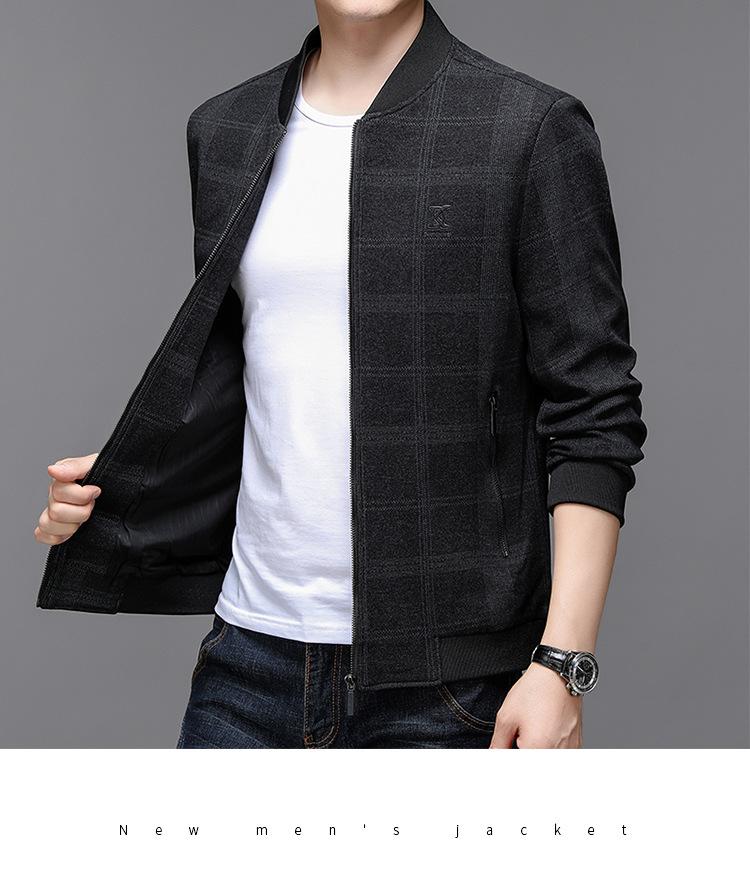 2025 Primavera y Otoño Nueva Chaqueta Cepillada para Hombre Casual de Mediana Edad con Cremallera Cuello Alto Chaqueta Suelta a Cuadros Ropa de Negocios