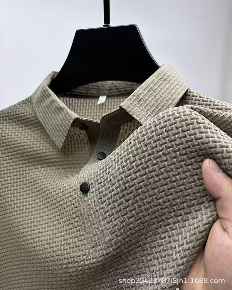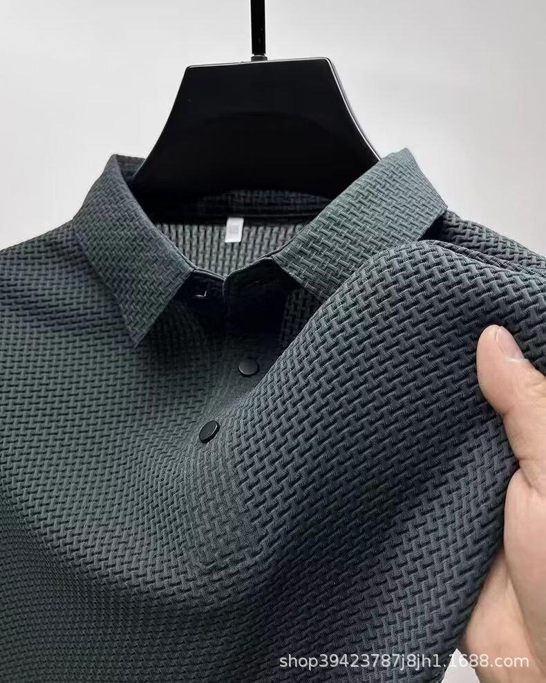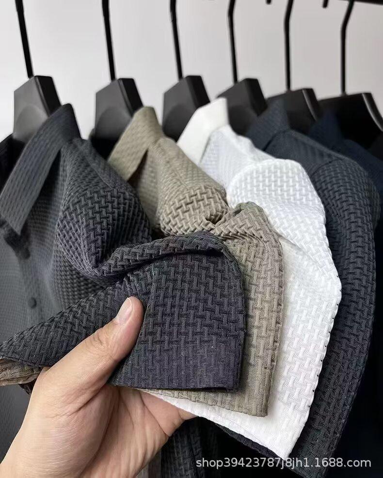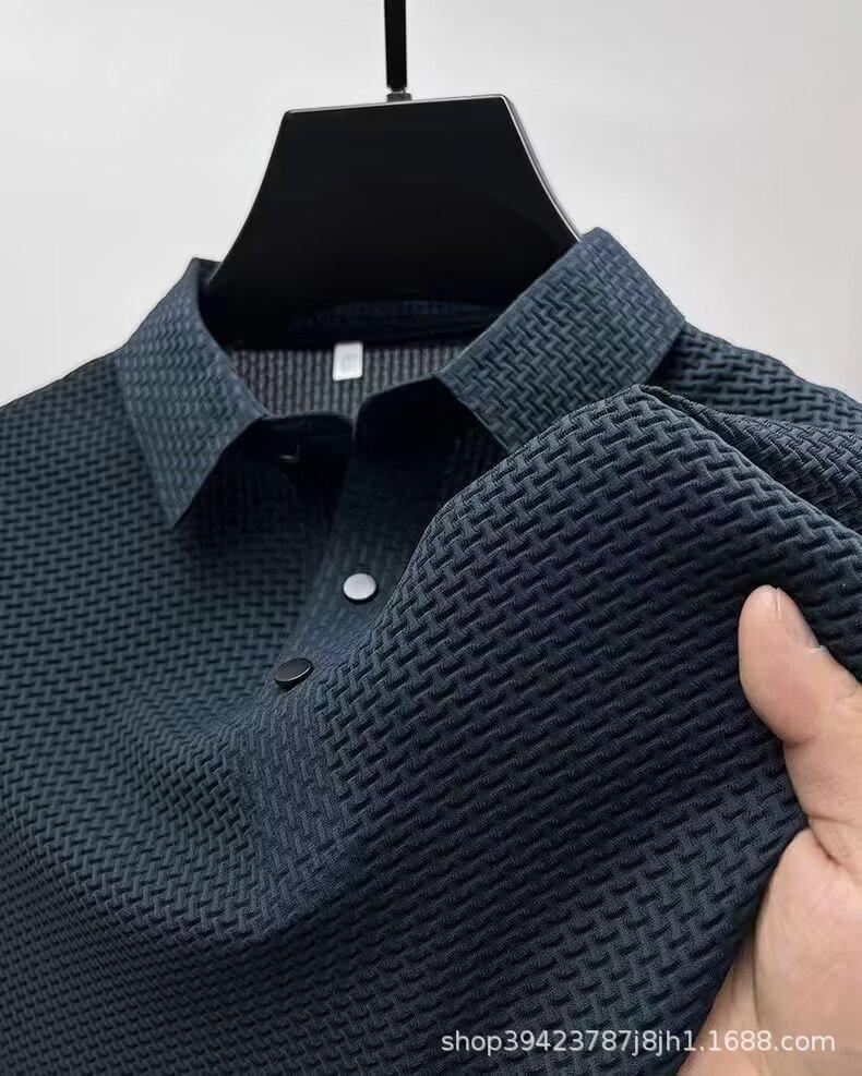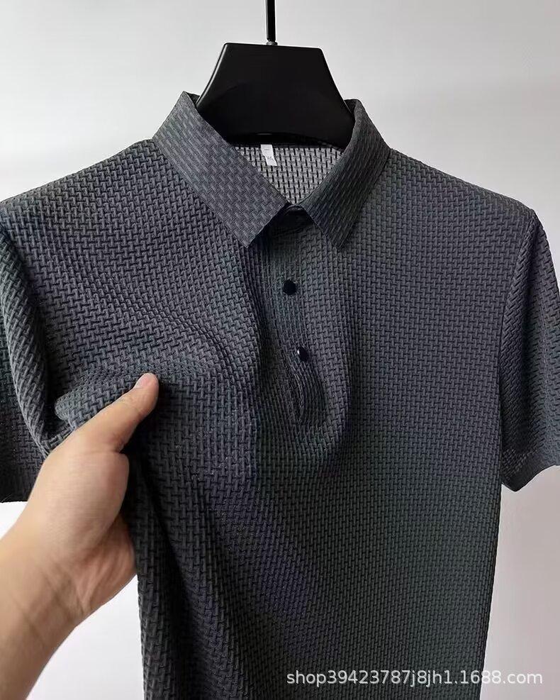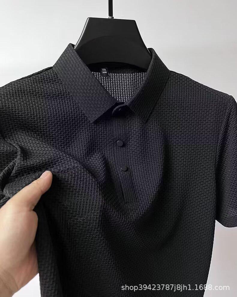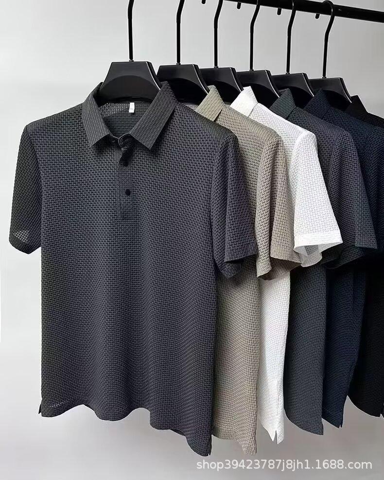 Camiseta de manga corta de malla de verano para hombre, de seda de hielo transfronteriza, con cuello de camisa, polo deslizante de color, ropa de media manga para hombre