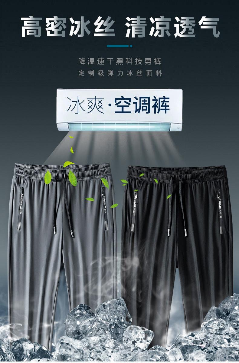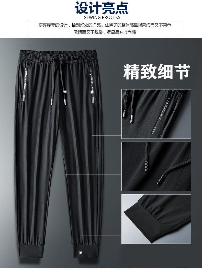 Pantalones de seda de hielo, pantalones casuales de verano para hombre, pantalones de primavera de talla grande, de secado rápido, deportivos, elásticos finos, pantalones transpirables para hombre.