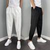 Pantalones deportivos para hombre, informales, de verano, de seda helada, holgados, coreanos, de moda, rectos y sueltos, pantalones de media pierna para hombre