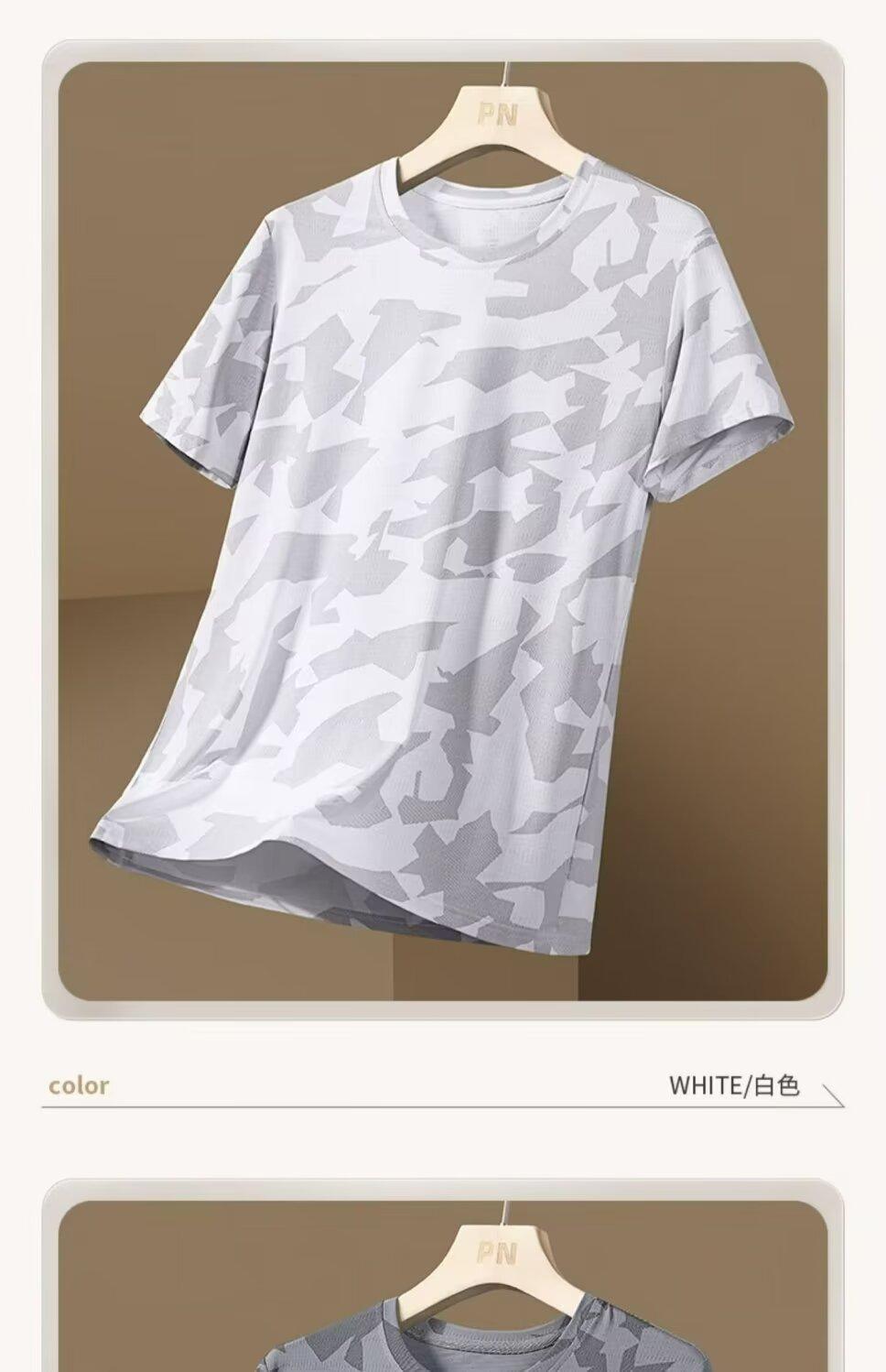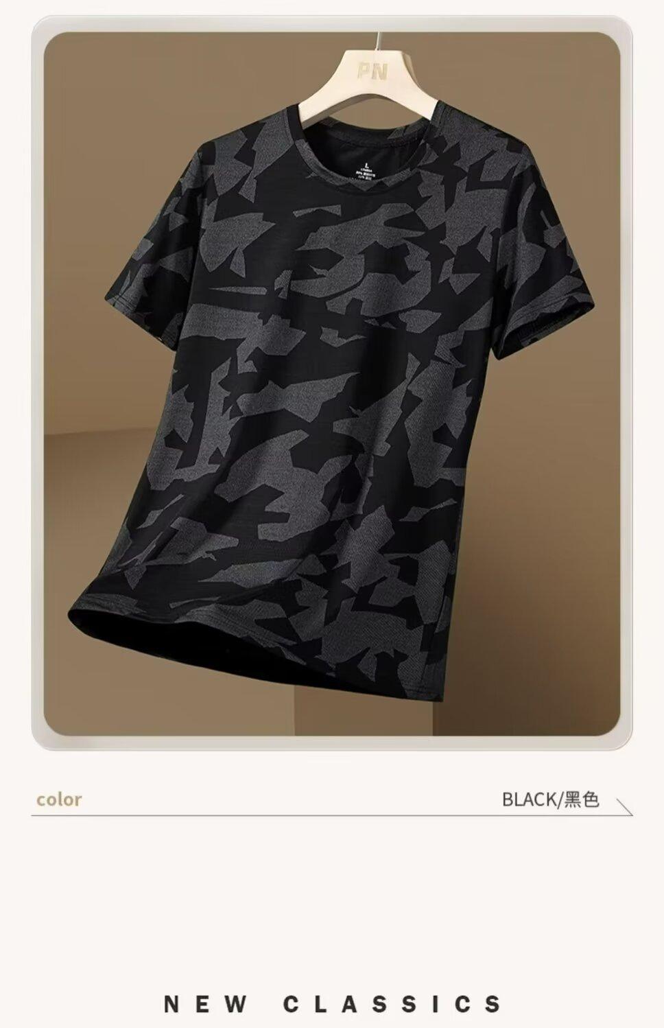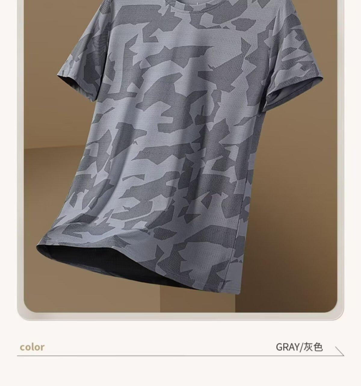 Camiseta deportiva de manga corta de seda de hielo para hombre, de verano, de malla fina, de secado rápido, informal, transpirable, holgada, de camuflaje, para correr, talla grande