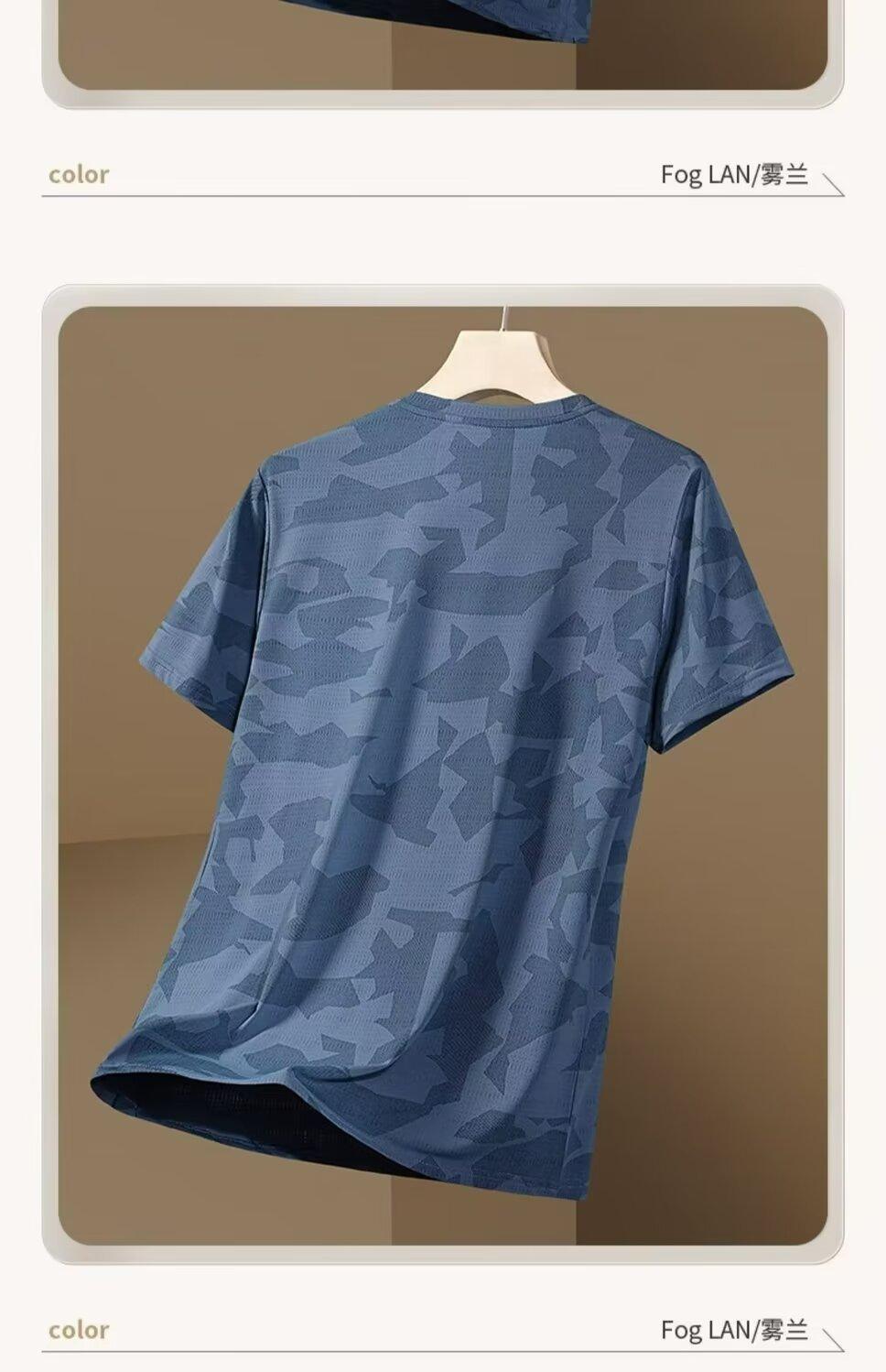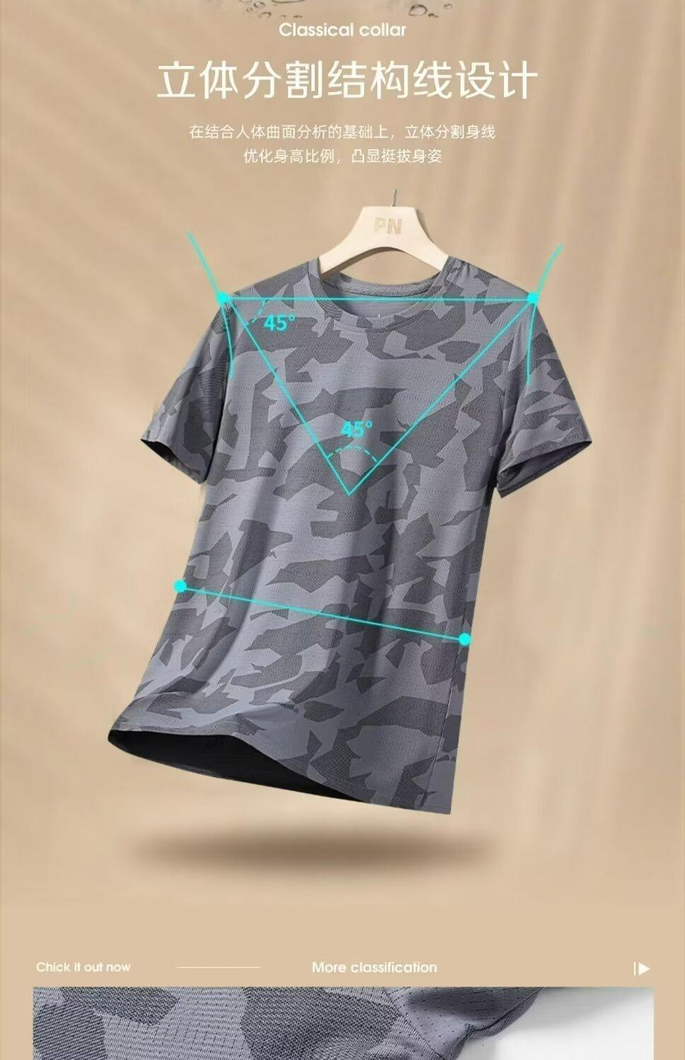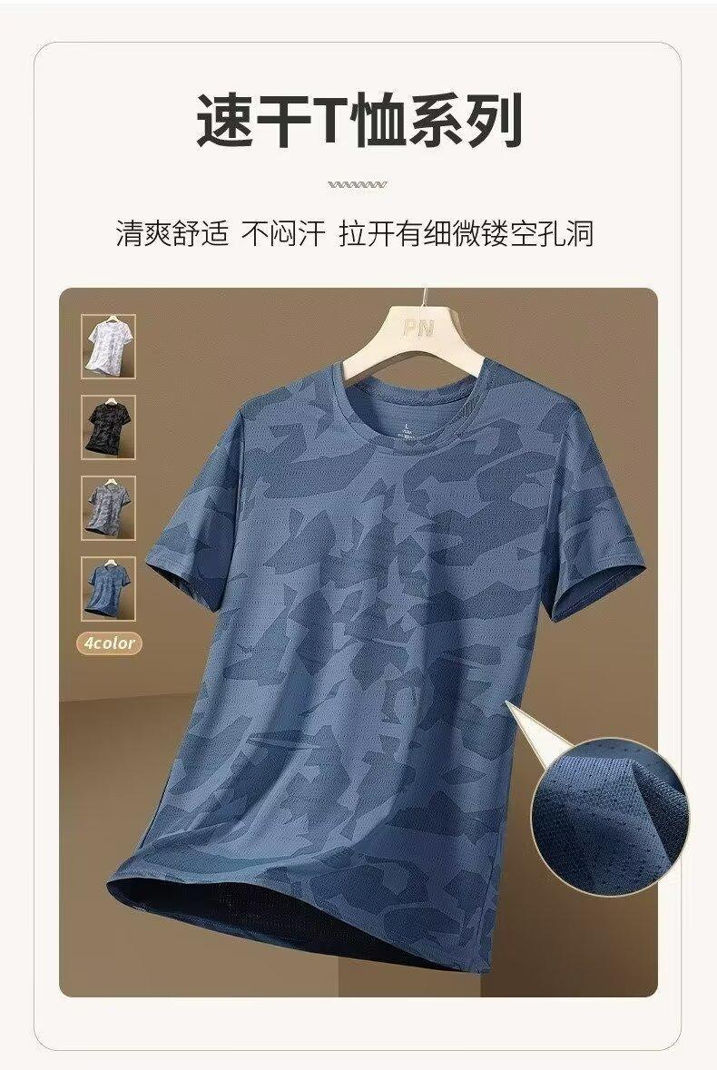 Camiseta deportiva de manga corta de seda de hielo para hombre, de verano, de malla fina, de secado rápido, informal, transpirable, holgada, de camuflaje, para correr, talla grande