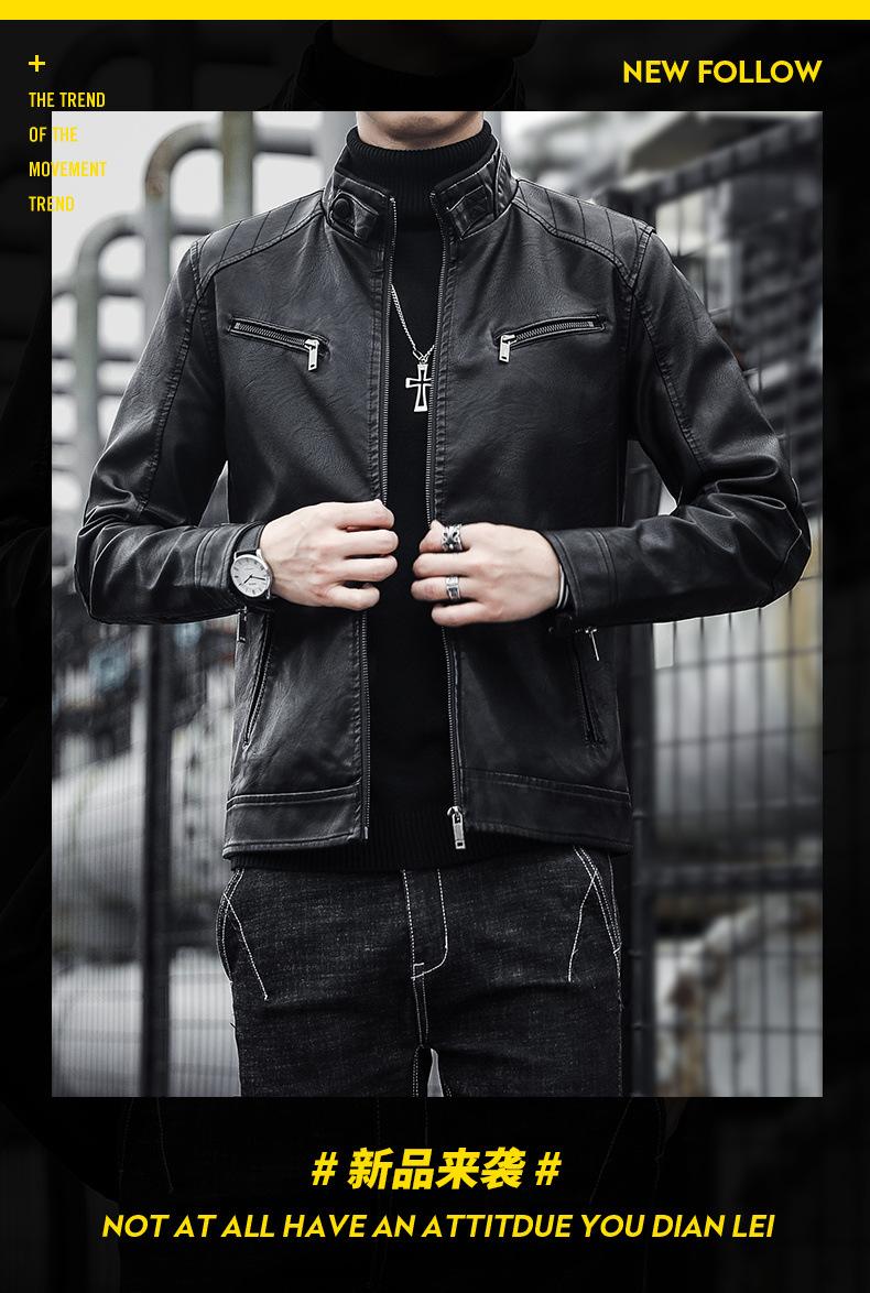 Chaqueta de cuero informal de otoño e invierno para hombre, chaqueta de motociclista para hombre, estilo coreano, ajustada, de moda juvenil, de cuero PU para hombre, disponible en stock.