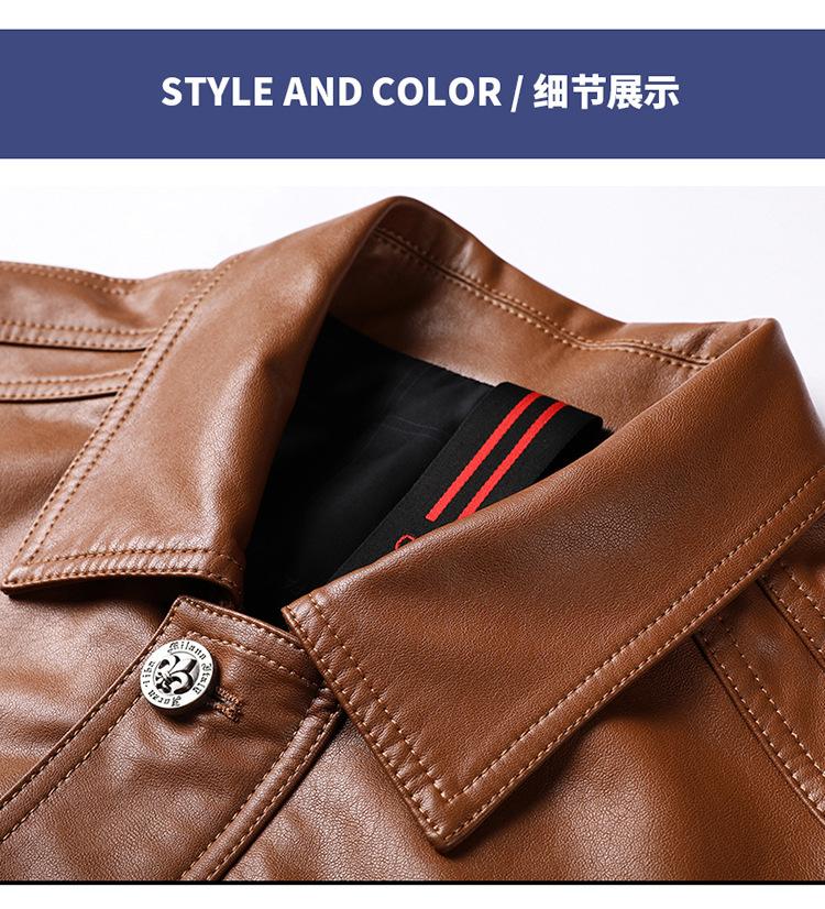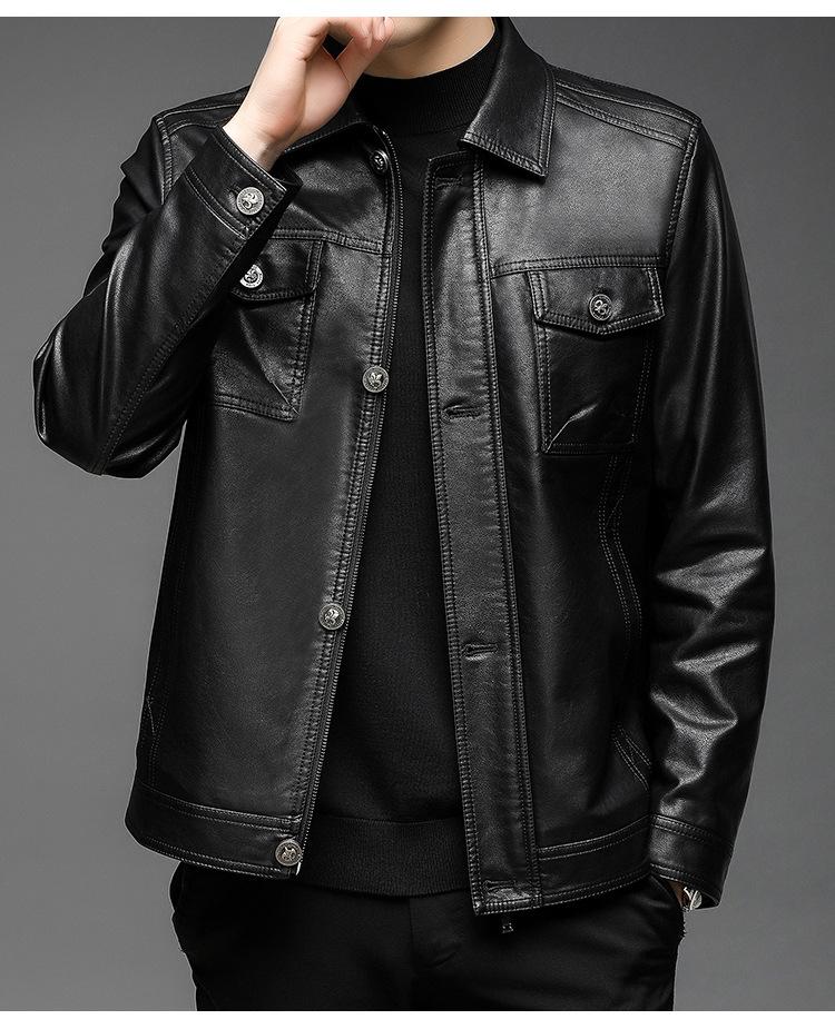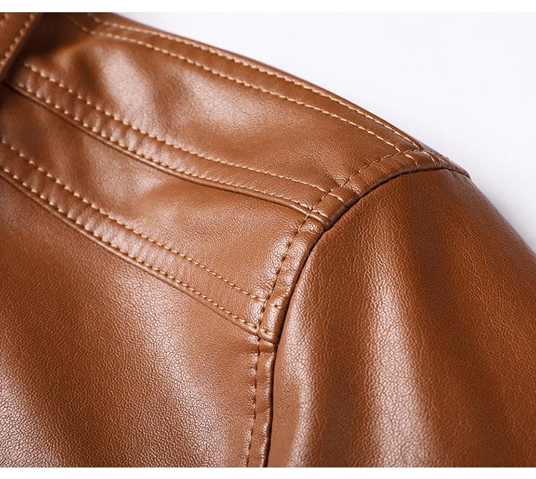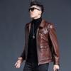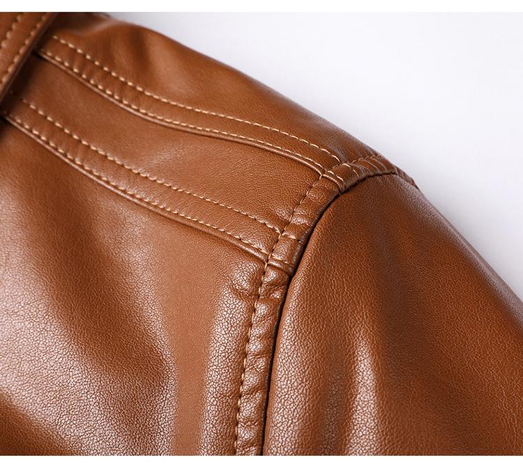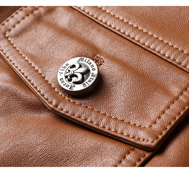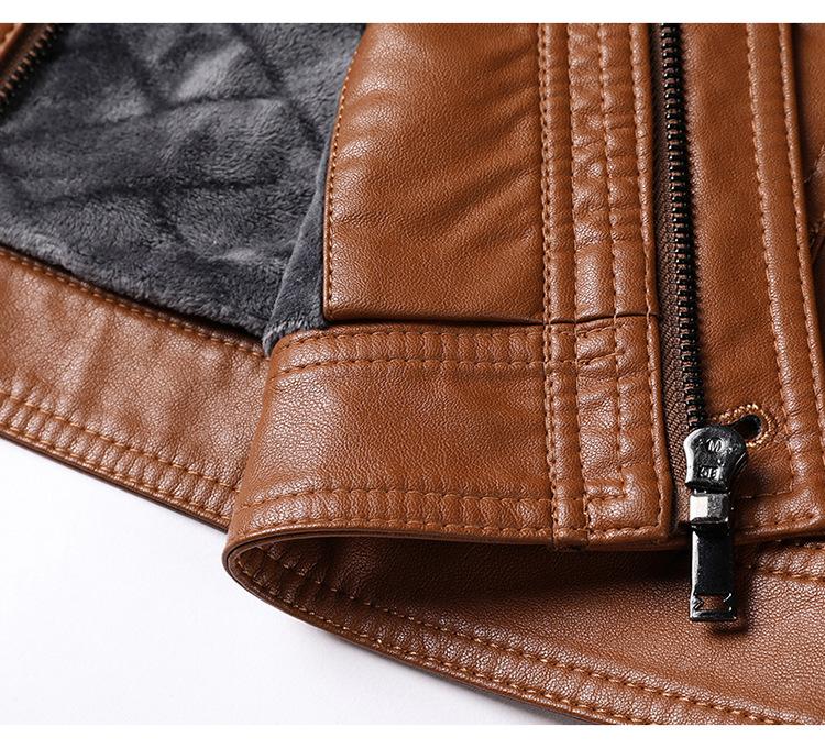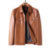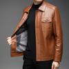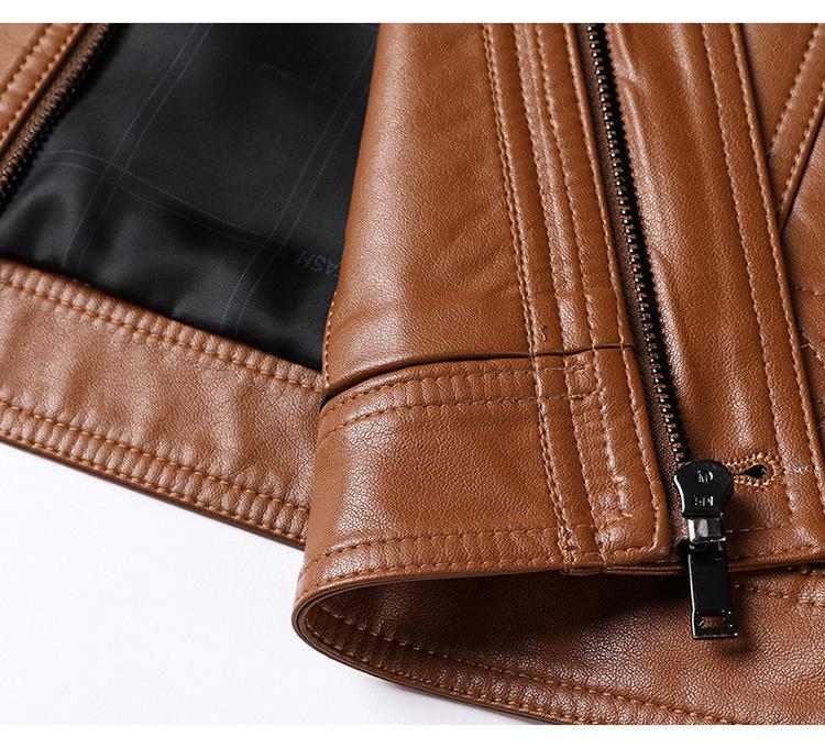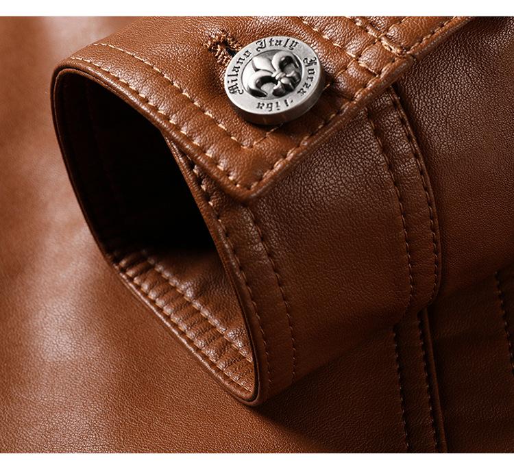 Chaqueta de cuero de solapa corta entallada para hombre, nueva ropa de cuero Haining de otoño e invierno, forrada con vellón, chaqueta de cuero PU para jóvenes.