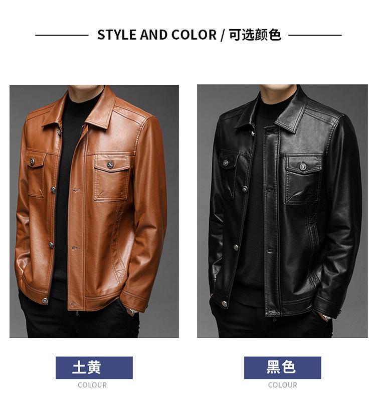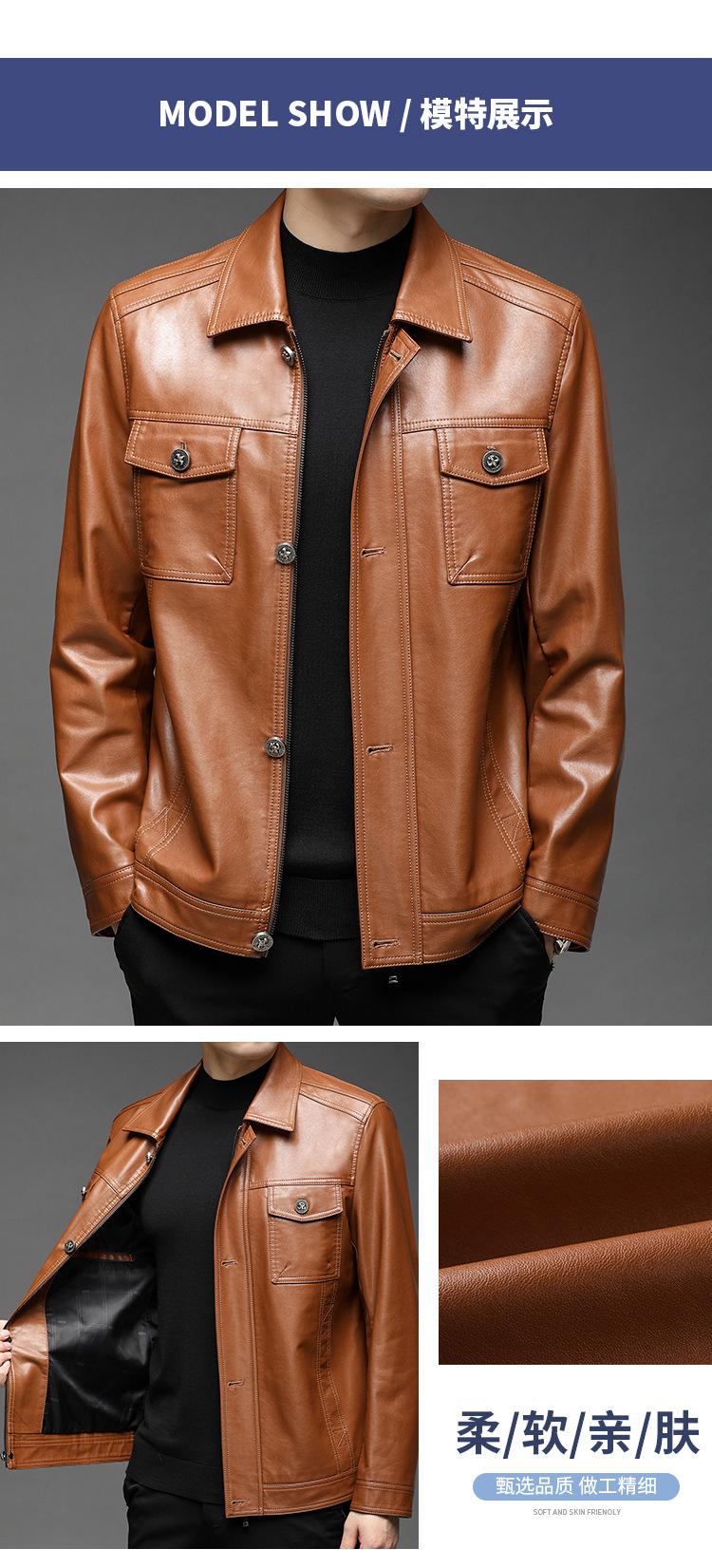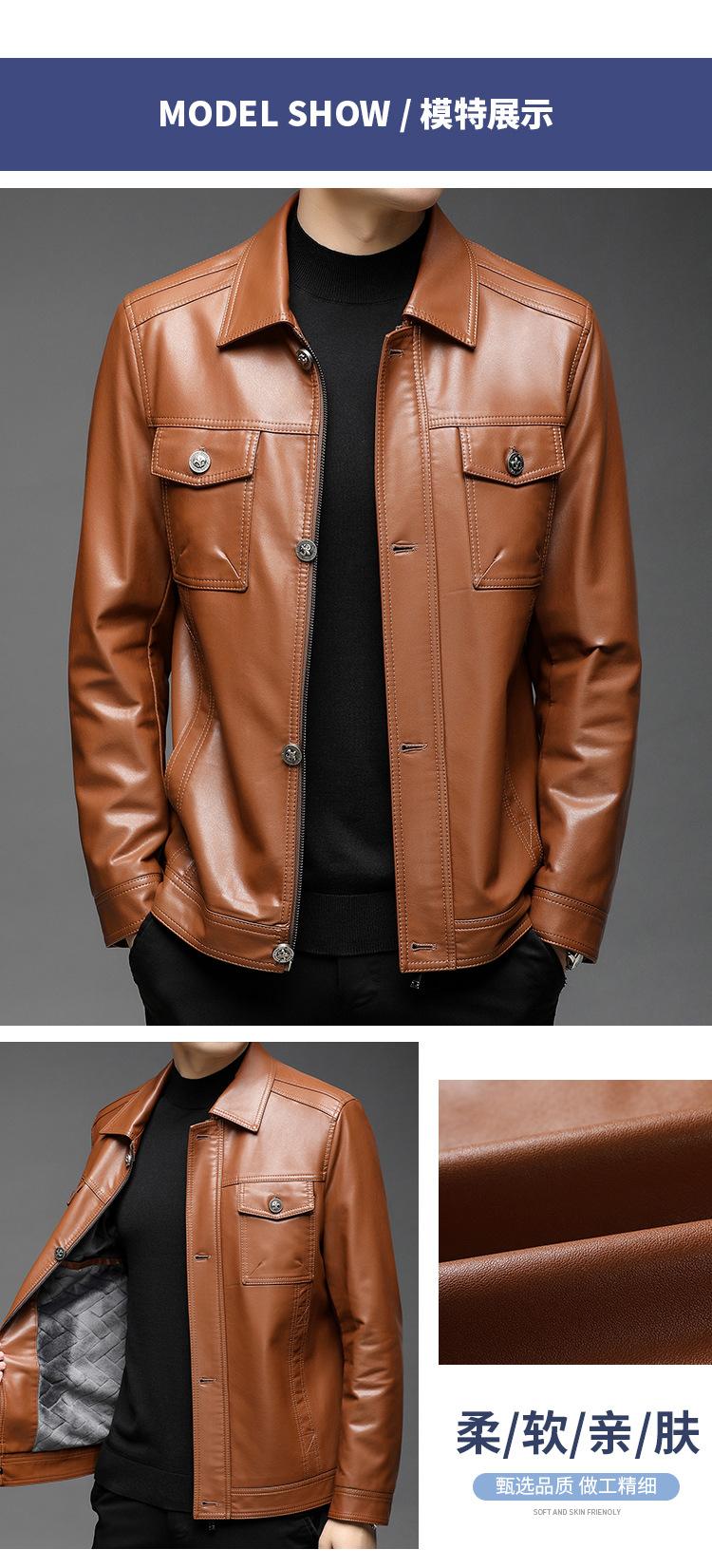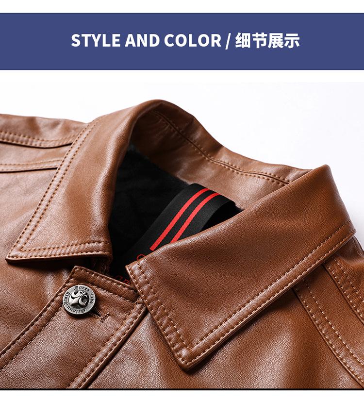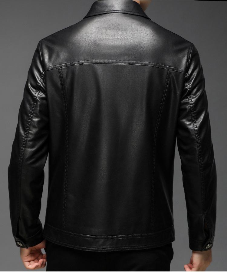 Chaqueta de cuero de solapa corta entallada para hombre, nueva ropa de cuero Haining de otoño e invierno, forrada con vellón, chaqueta de cuero PU para jóvenes.