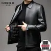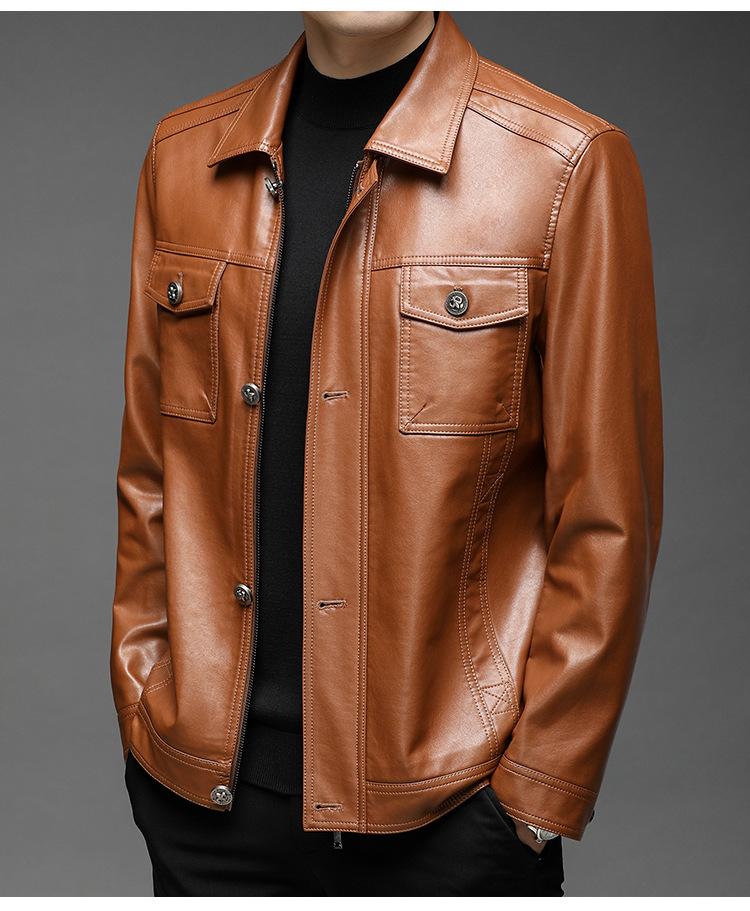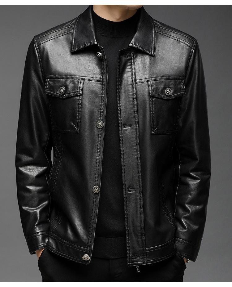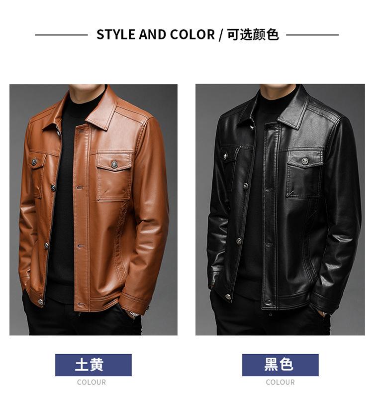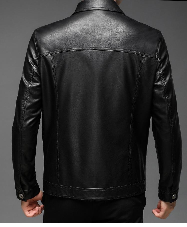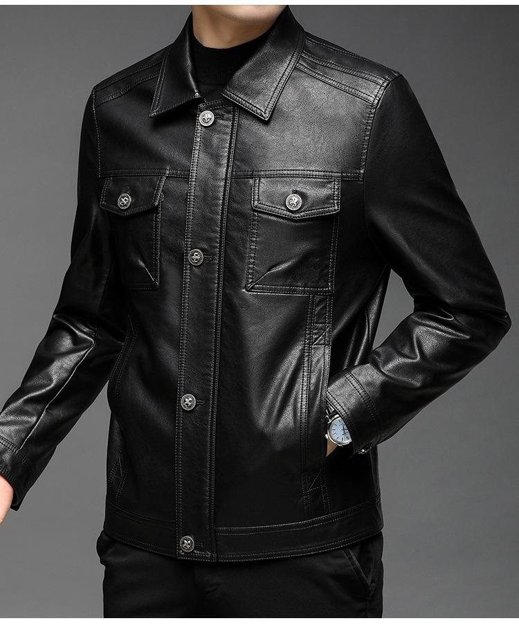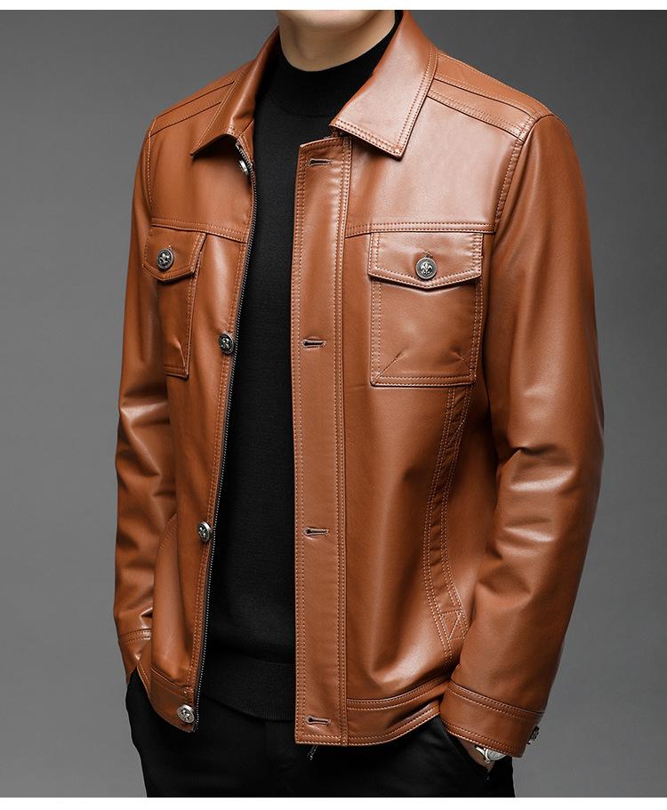 Chaqueta de cuero de solapa corta entallada para hombre, nueva ropa de cuero Haining de otoño e invierno, forrada con vellón, chaqueta de cuero PU para jóvenes.