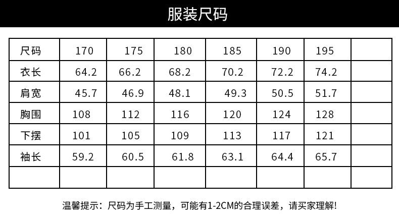 170-M, 175-L, 180-XL, 185-2XL, 190-3XL, 195-4XL