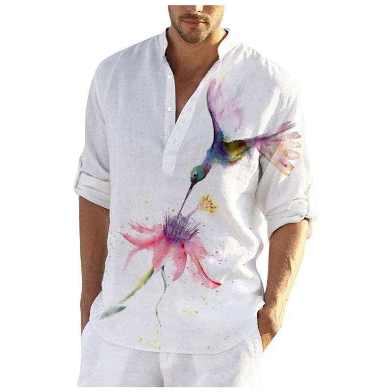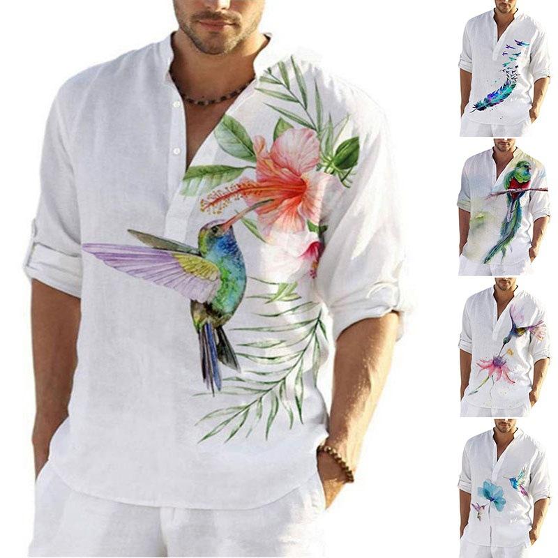 Camisa estampada de moda europea y americana para hombre 2023, camisa informal de manga larga para hombre