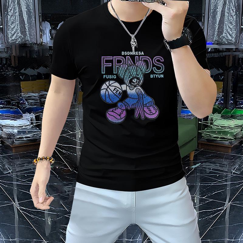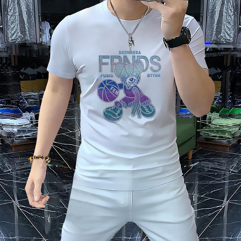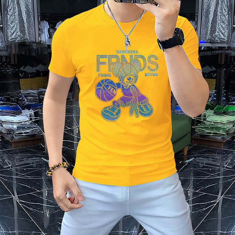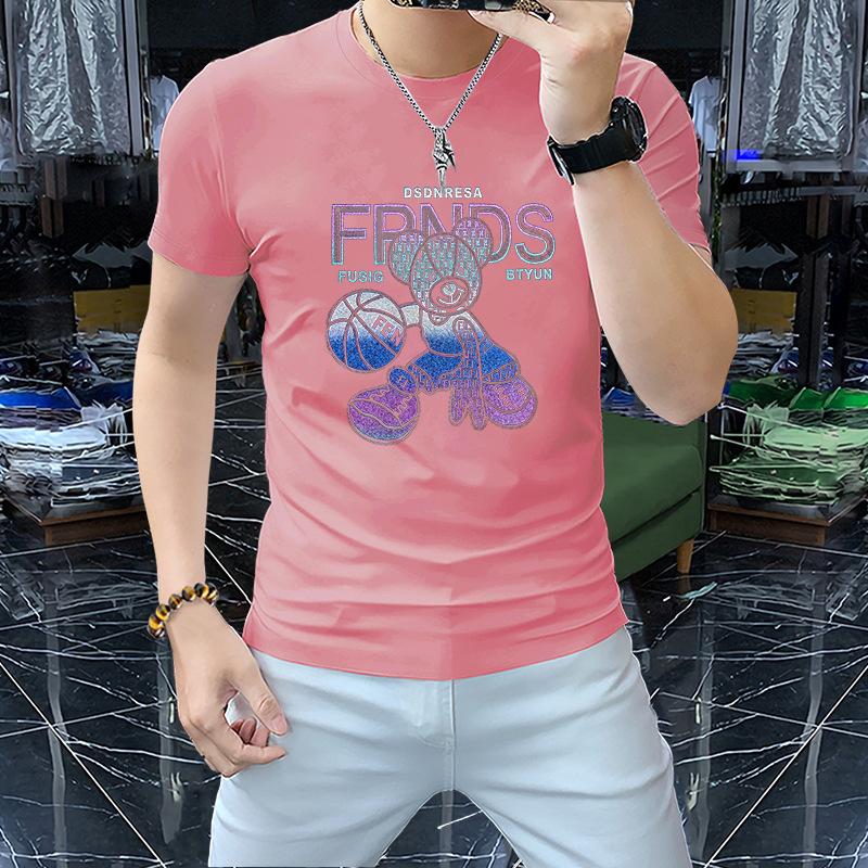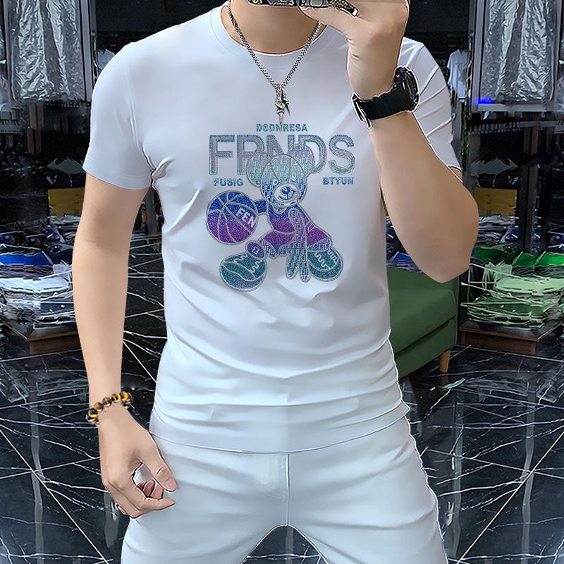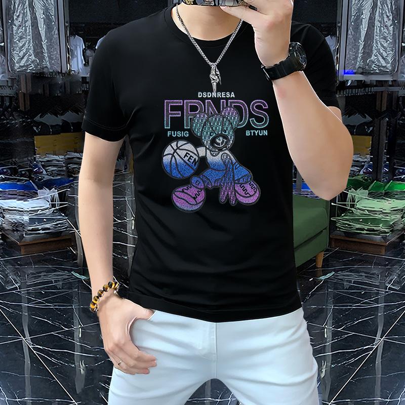 Camiseta de manga corta para hombre, de algodón mercerizado, cómoda y transpirable, de media manga, estilo europeo, de cuello redondo y corte entallado, para verano.