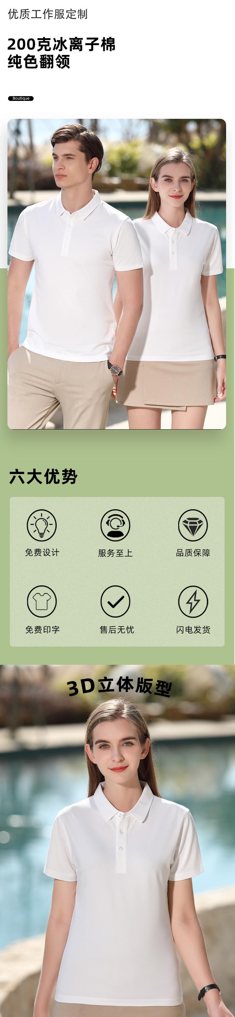 Camiseta de manga corta de seda helada de color liso de verano, ropa de trabajo, camisa publicitaria con solapa y estampado de logotipo, ropa de trabajo bordada