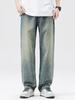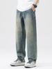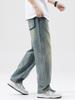 Pantalones vaqueros rectos de pierna ancha para hombre, estilo urbano, holgados, sencillos, combinables, con bolsillo trasero personalizado, informales, para jóvenes.