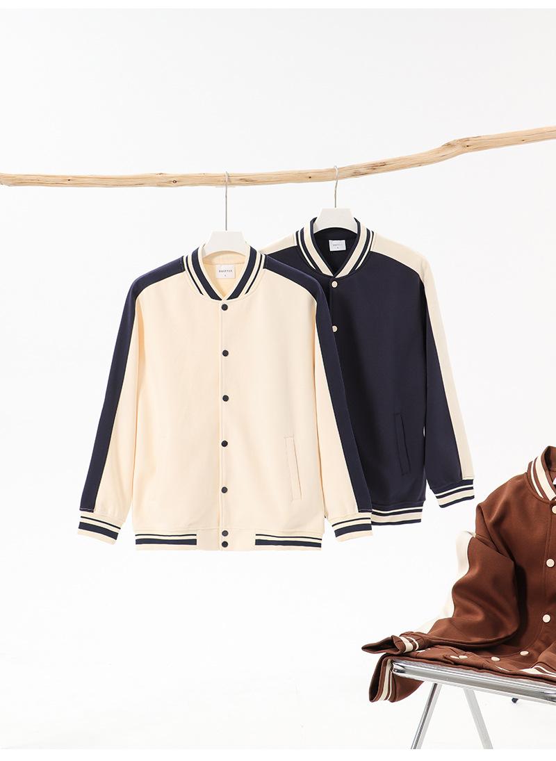 Otoño e Invierno Nuevo Algodón Compuesto Pesado Color en Contraste Traje de Béisbol para Hombre y Mujer Marca de Moda Suéter Cárdigan Holgado Top para Pareja