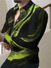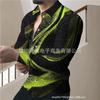 Camisa de manga larga estampada de moda para hombre, estilo europeo y americano, con solapa informal, 2023