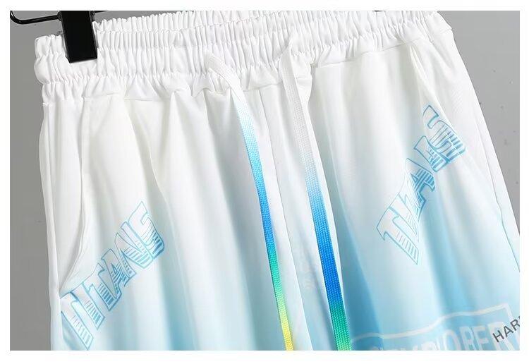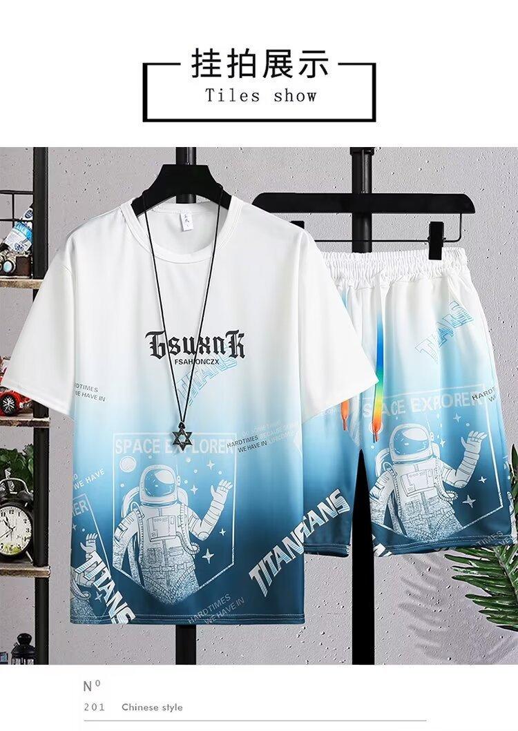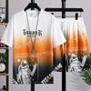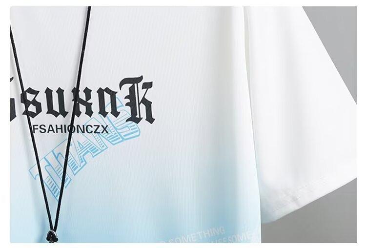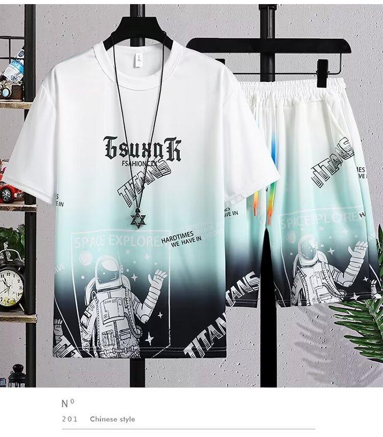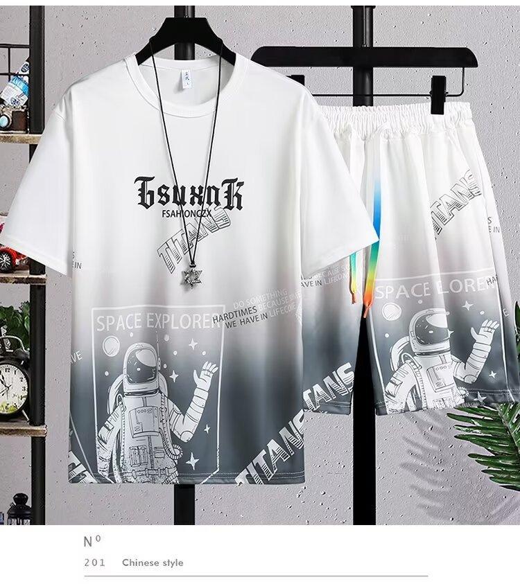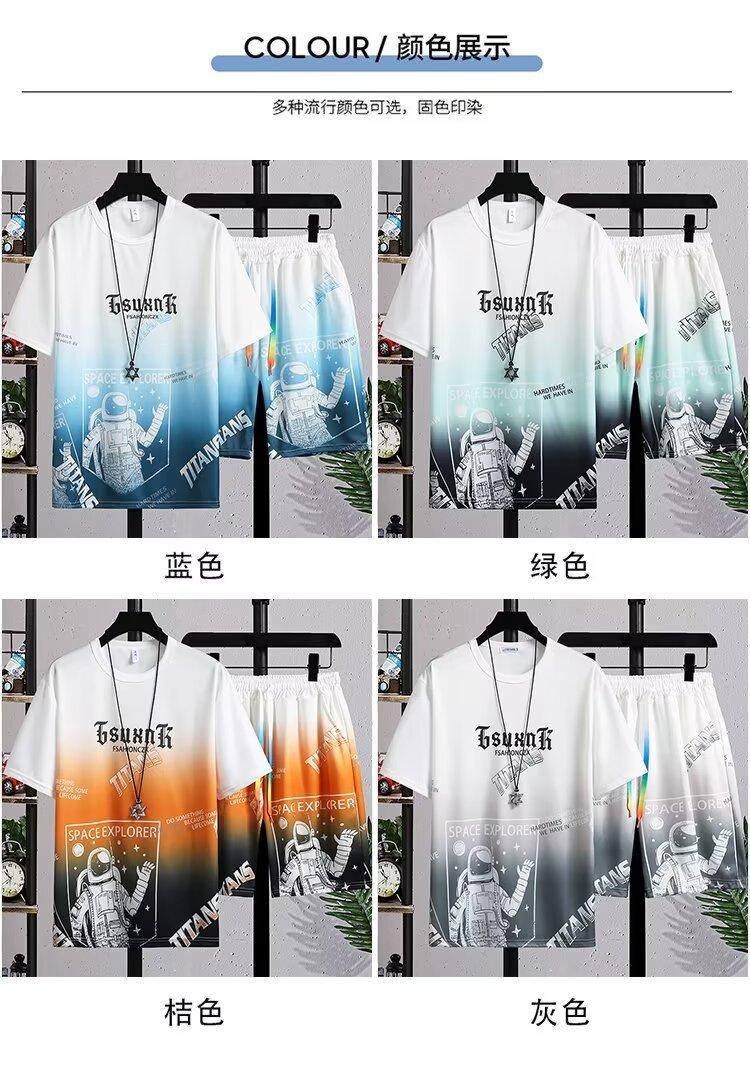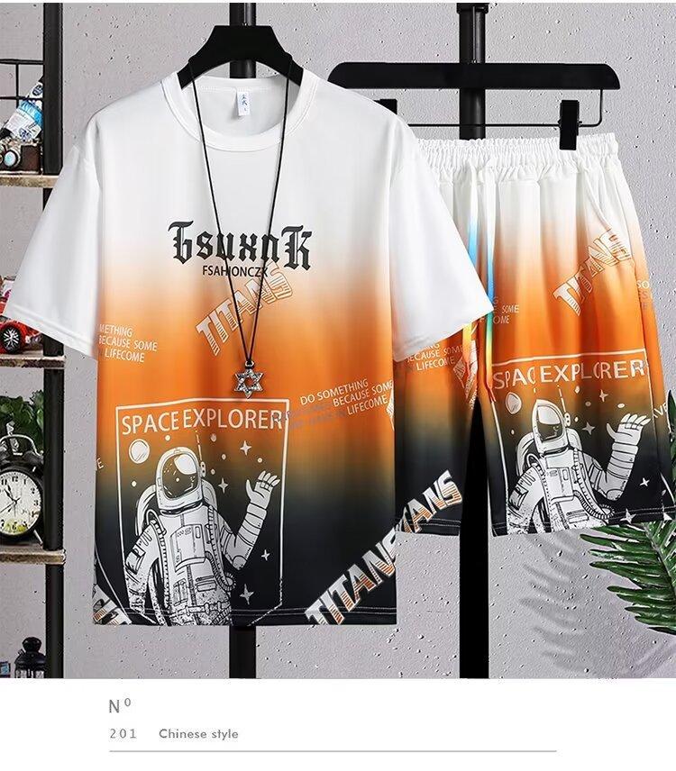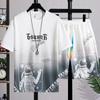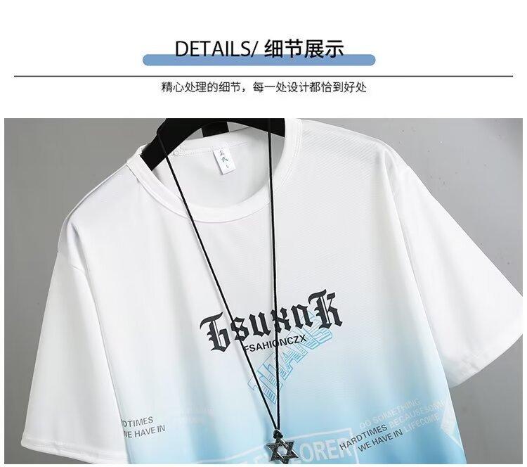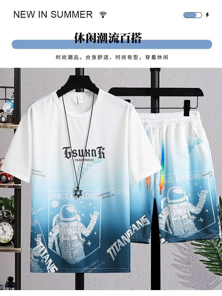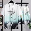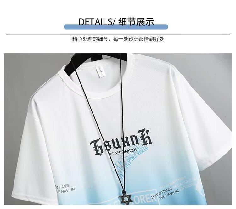 Traje de pantalones cortos de manga corta para hombre, ropa informal de verano coreana a la moda, holgada, fina y atractiva, camiseta