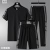 Traje deportivo de seda de hielo para hombre, pantalones cortos finos de verano, manga corta, ropa deportiva informal de secado rápido de alta gama para verano.