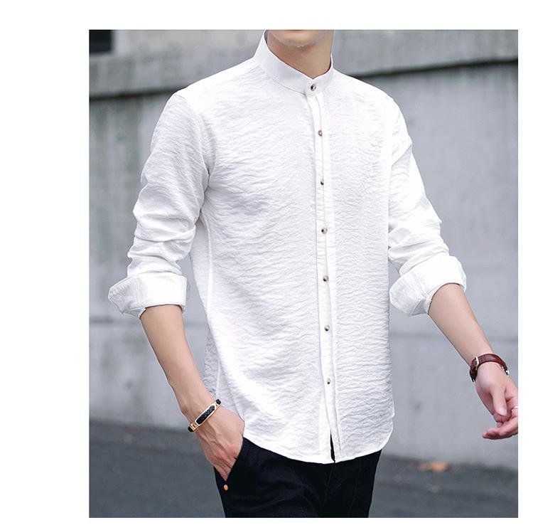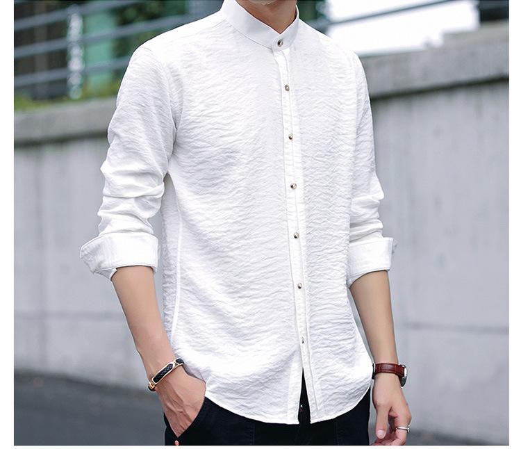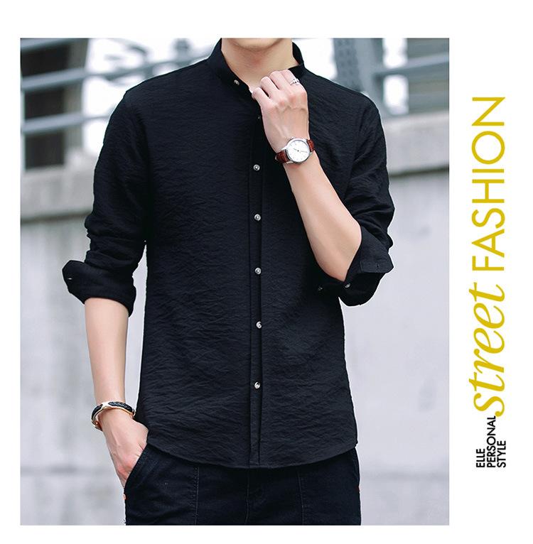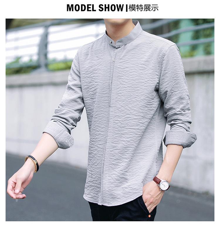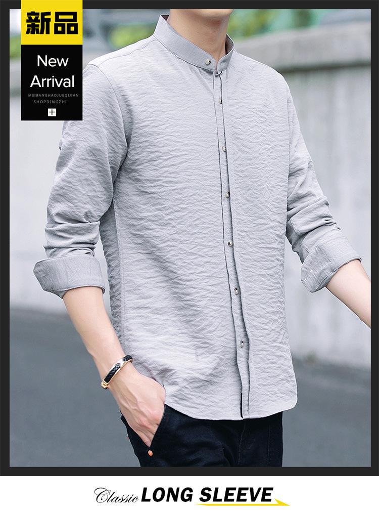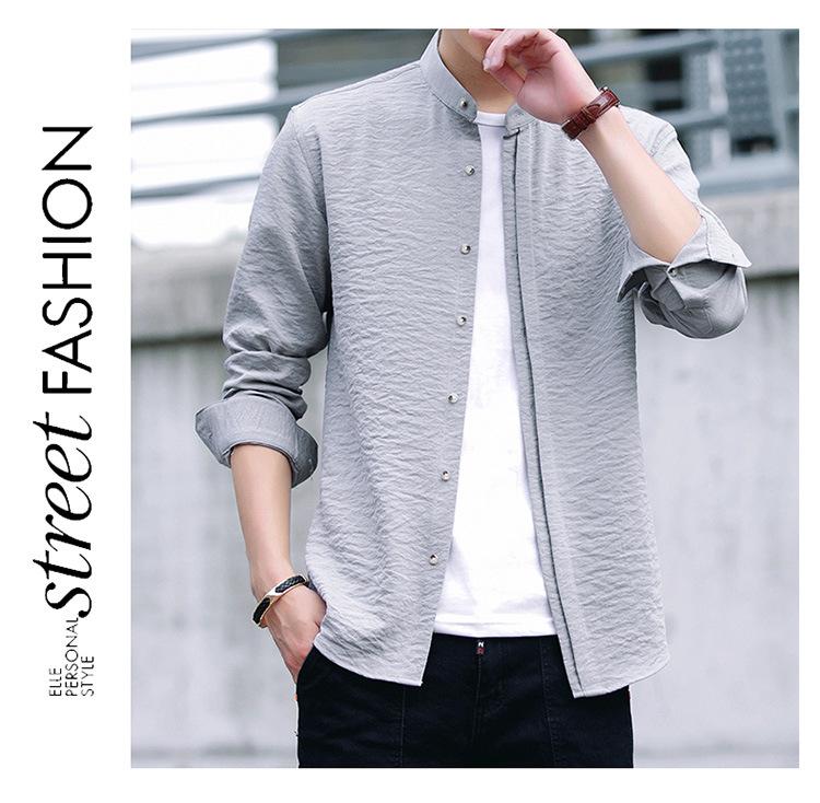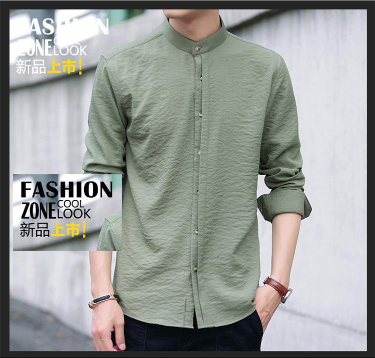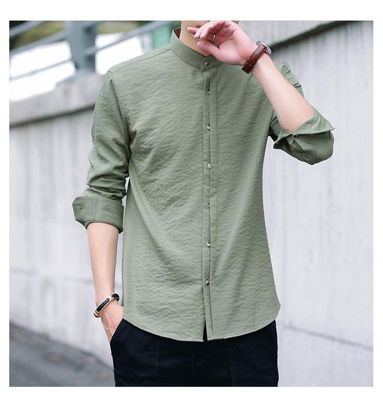 Compra Camisa de Manga Larga Nueva para Hombre Primavera y Otoño 2025 Cuello Mao Corte Slim Estilo Coreano Color Sólido Más Fácil de Combinar Moda Negocios Casual Estampado al por mayor en Joom.pro