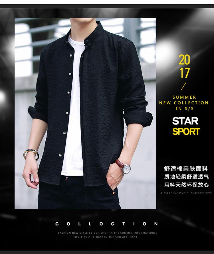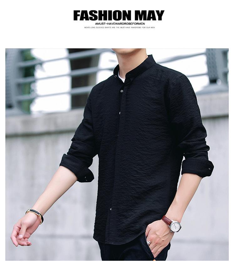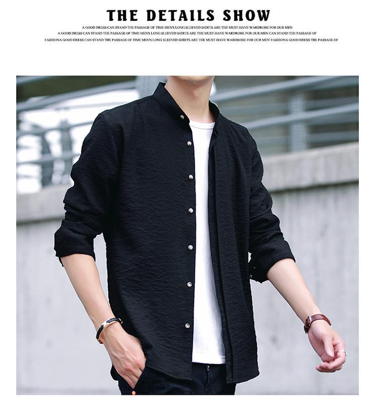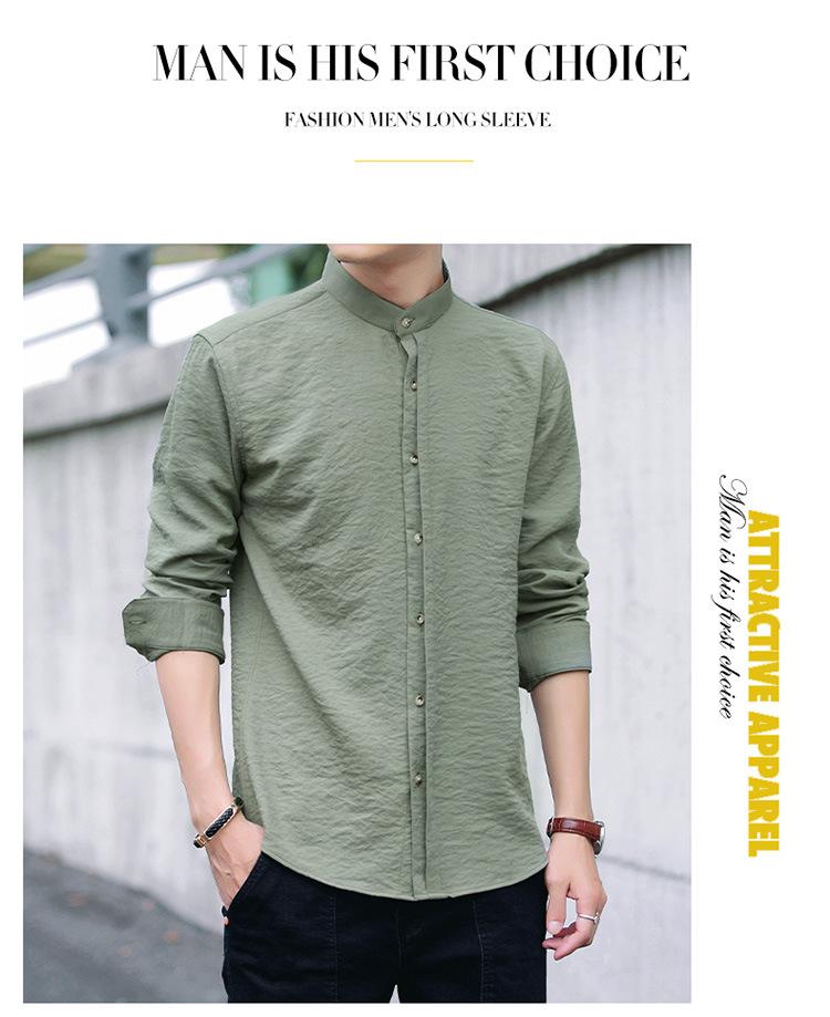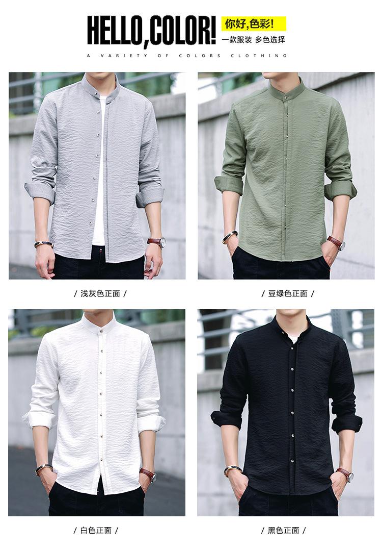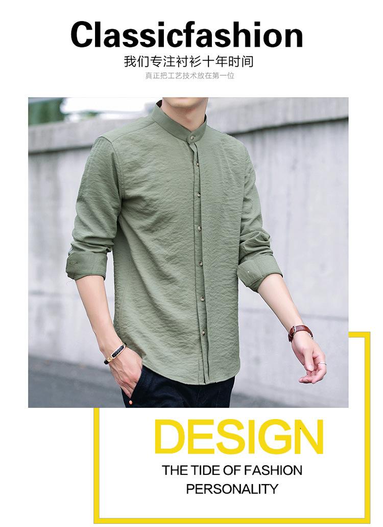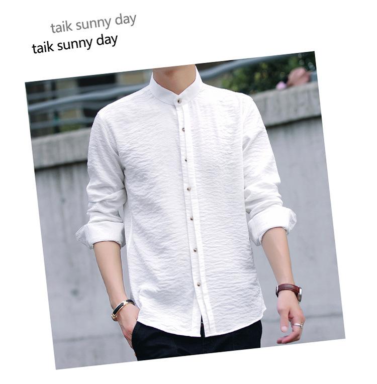 Compra Camisa de Manga Larga Nueva para Hombre Primavera y Otoño 2025 Cuello Mao Corte Slim Estilo Coreano Color Sólido Más Fácil de Combinar Moda Negocios Casual Estampado al por mayor en Joom.pro