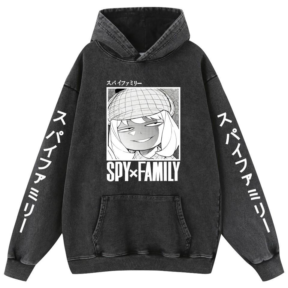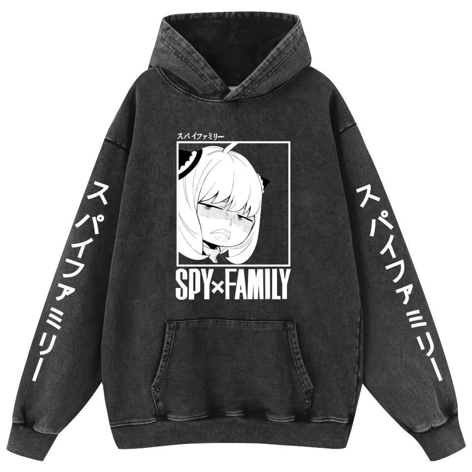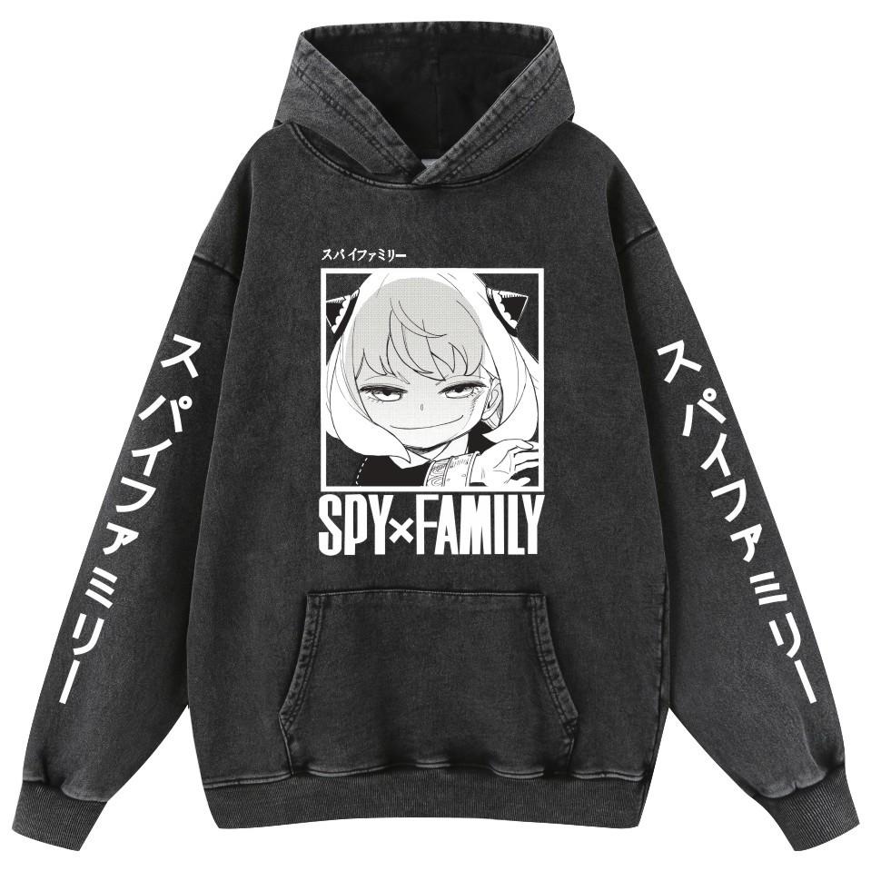 Sudadera con capucha de algodón estilo vintage lavado de la familia Spy Fancy Spy X para hombre y mujer.