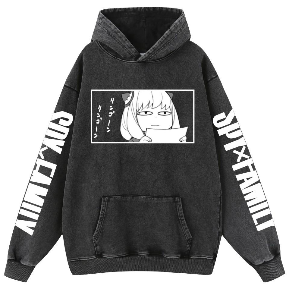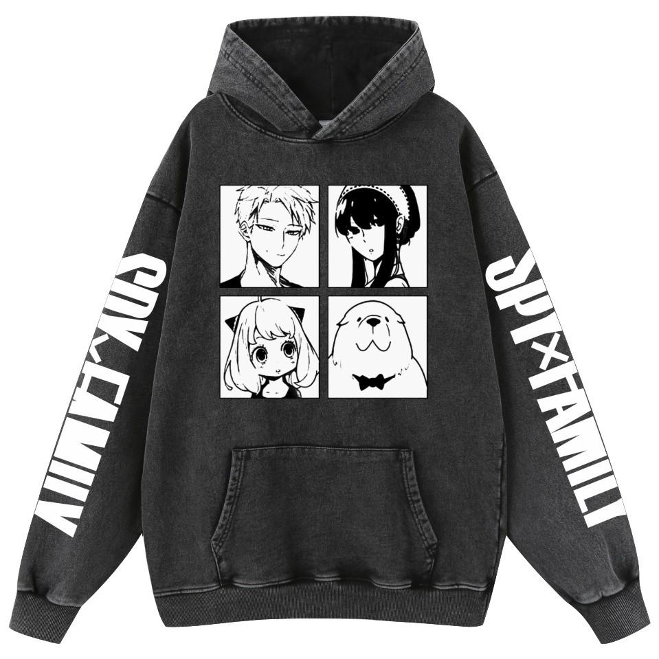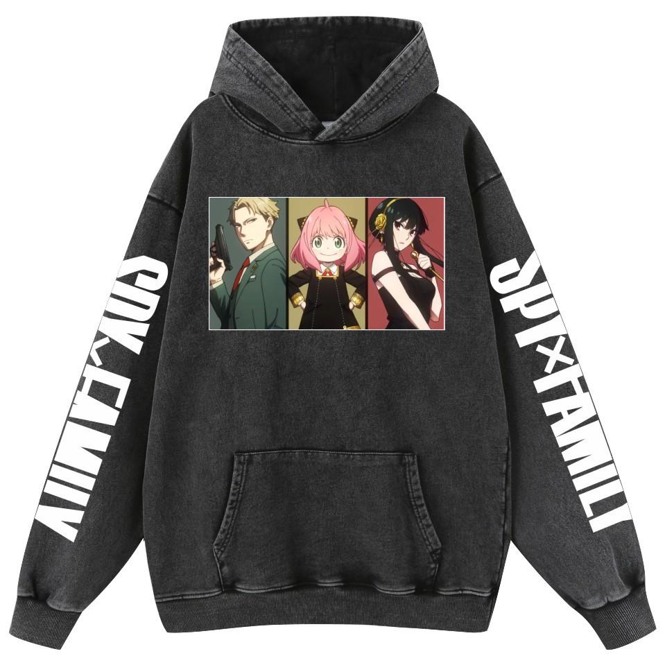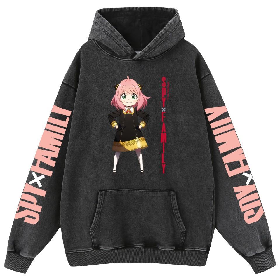 Sudadera con capucha de algodón estilo vintage lavado de la familia Spy Fancy Spy X para hombre y mujer.