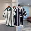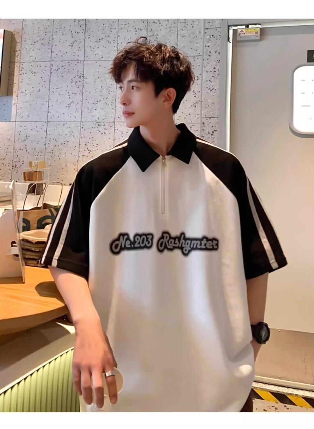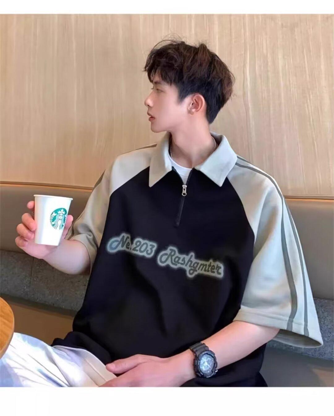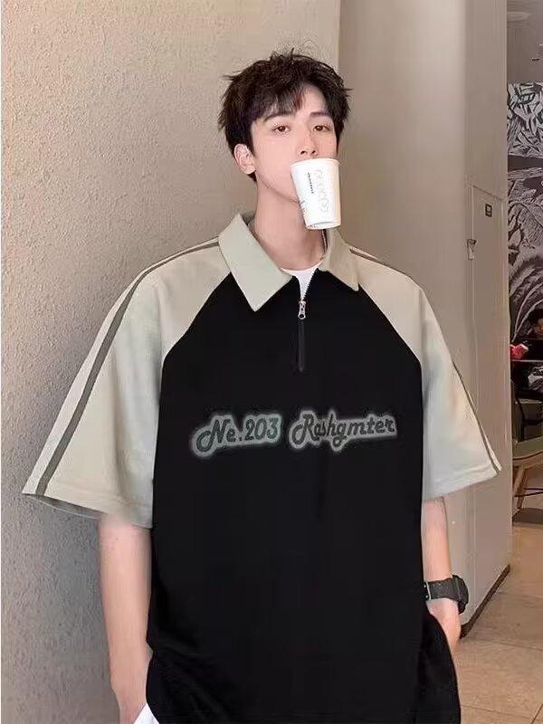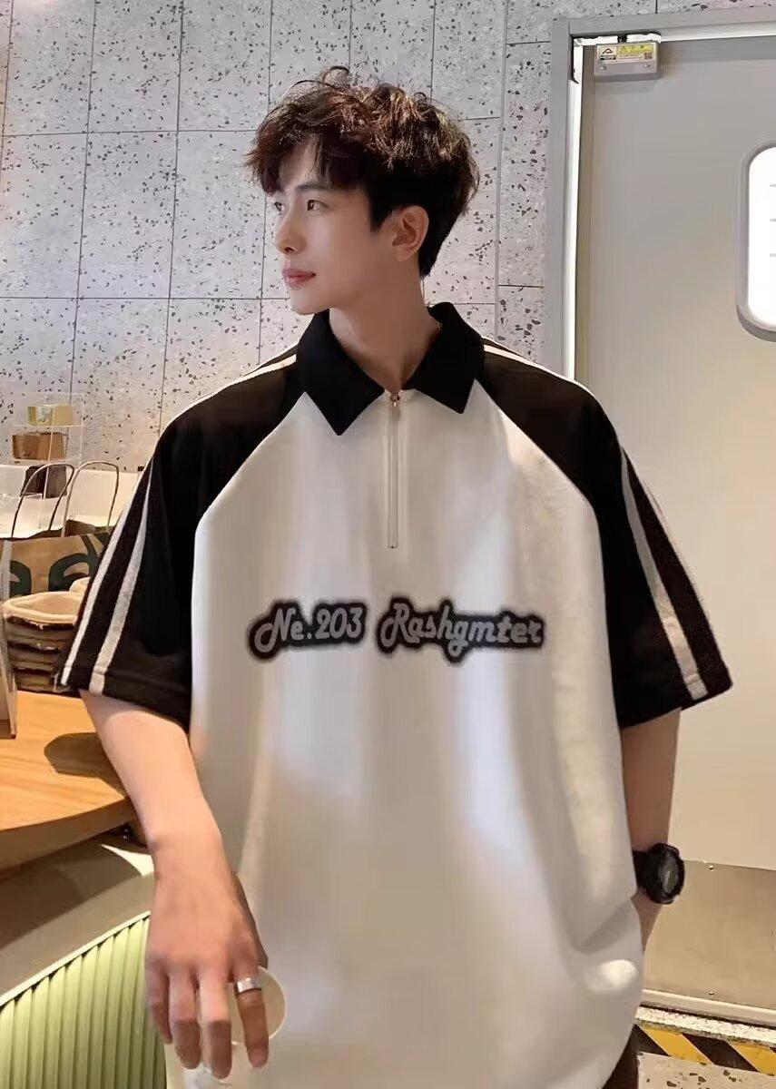 Marca de Moda de Estilo Americano Camiseta de Rayas de Manga Corta Lel para Hombre Verano 2024 Color en Contraste Media Cremallera Suelta Moderna Camisa Polo