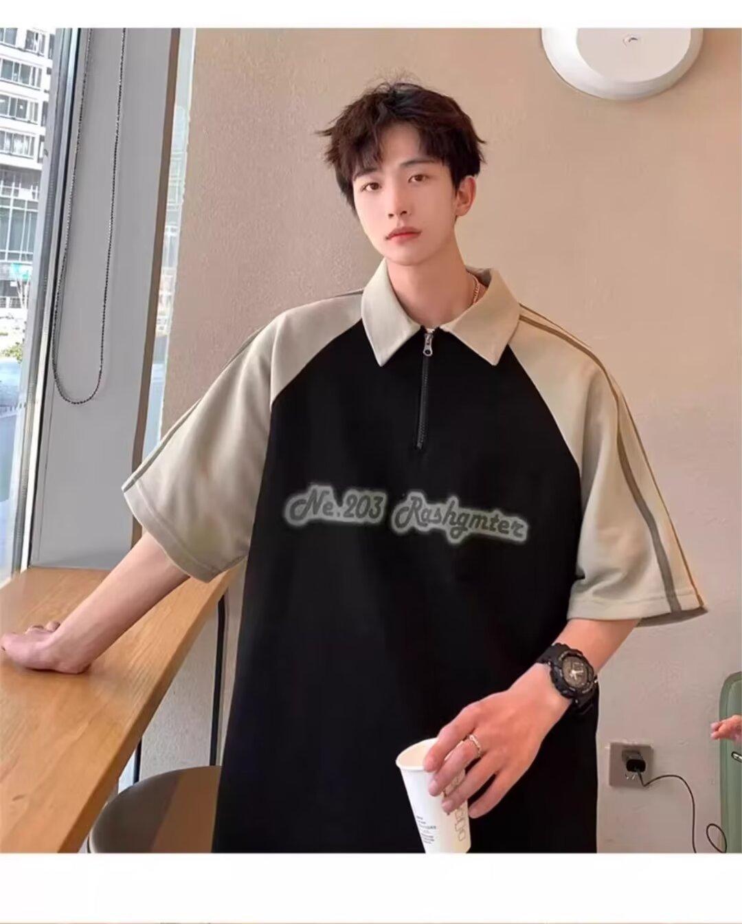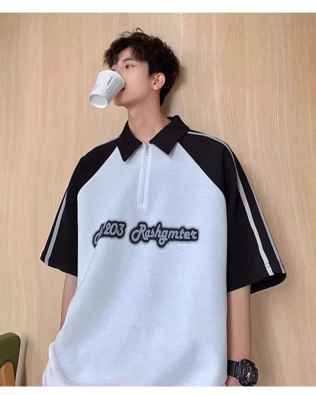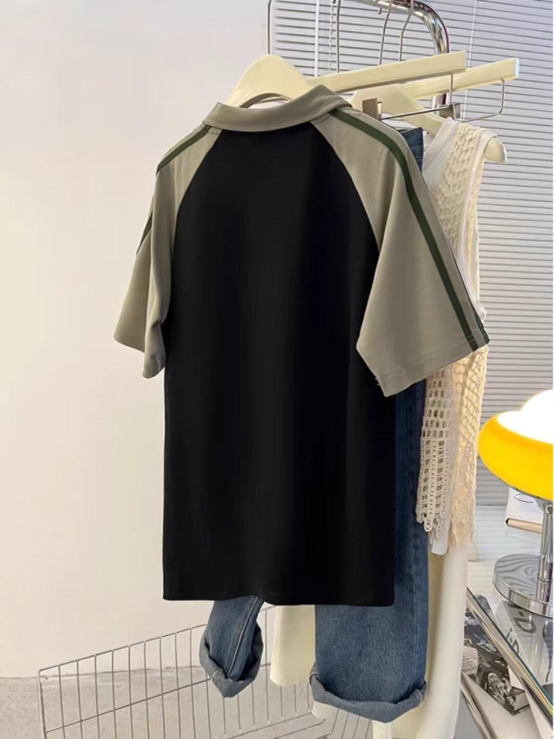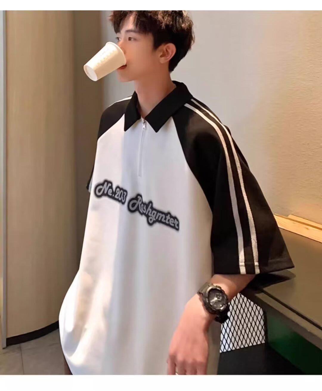 Marca de Moda de Estilo Americano Camiseta de Rayas de Manga Corta Lel para Hombre Verano 2024 Color en Contraste Media Cremallera Suelta Moderna Camisa Polo