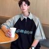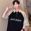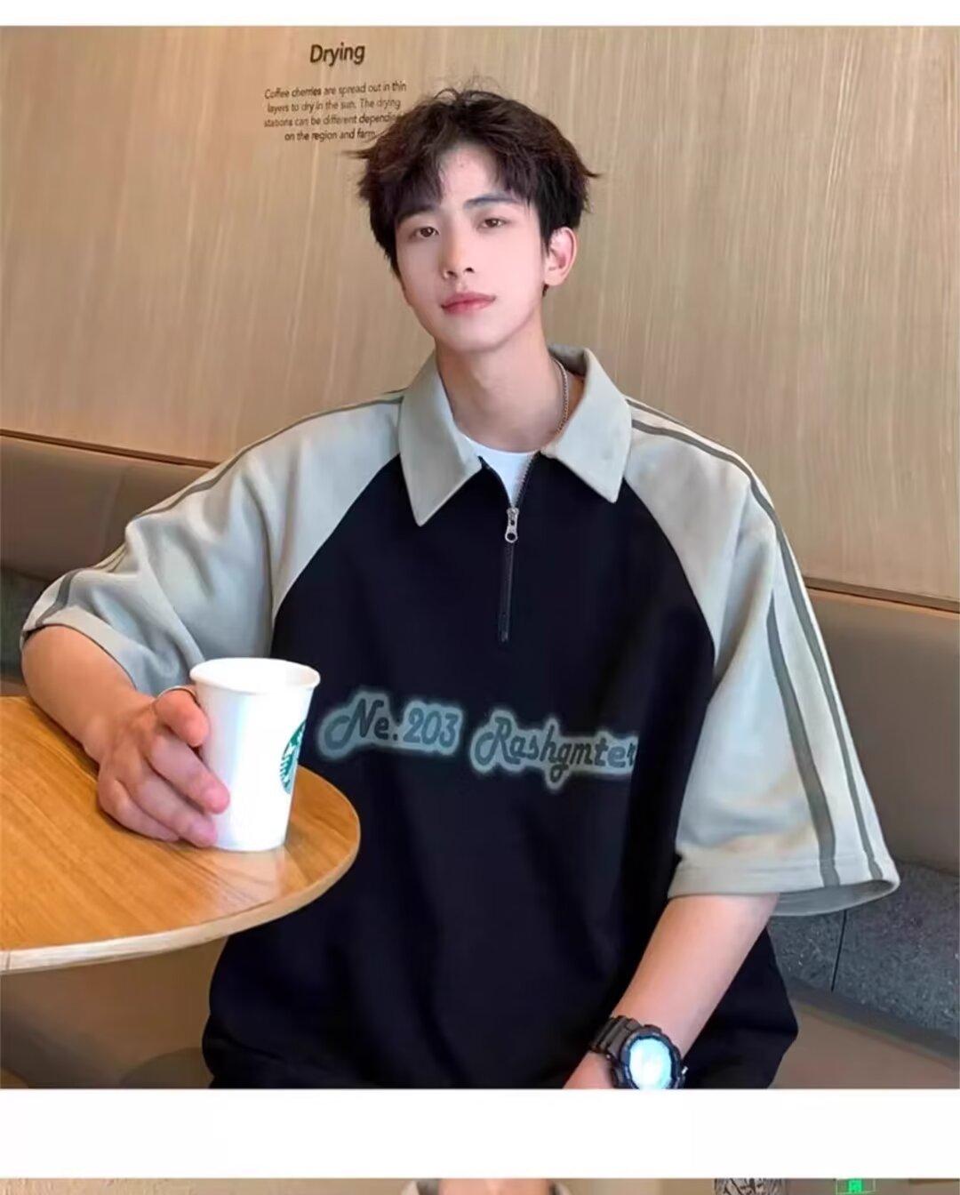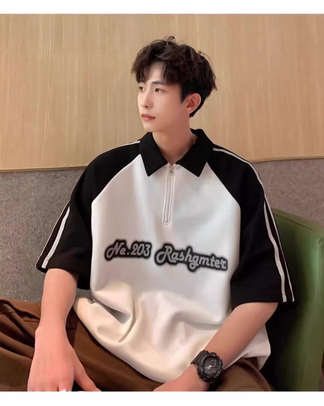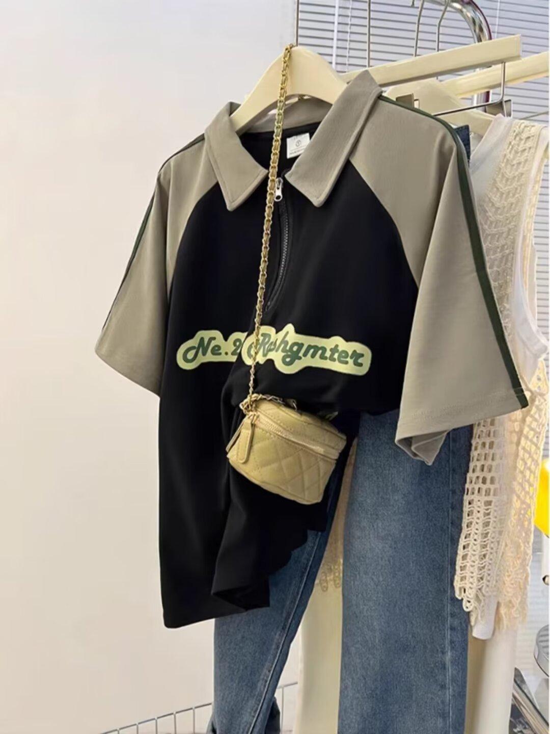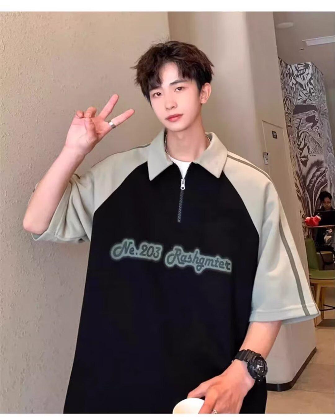 Marca de Moda de Estilo Americano Camiseta de Rayas de Manga Corta Lel para Hombre Verano 2024 Color en Contraste Media Cremallera Suelta Moderna Camisa Polo