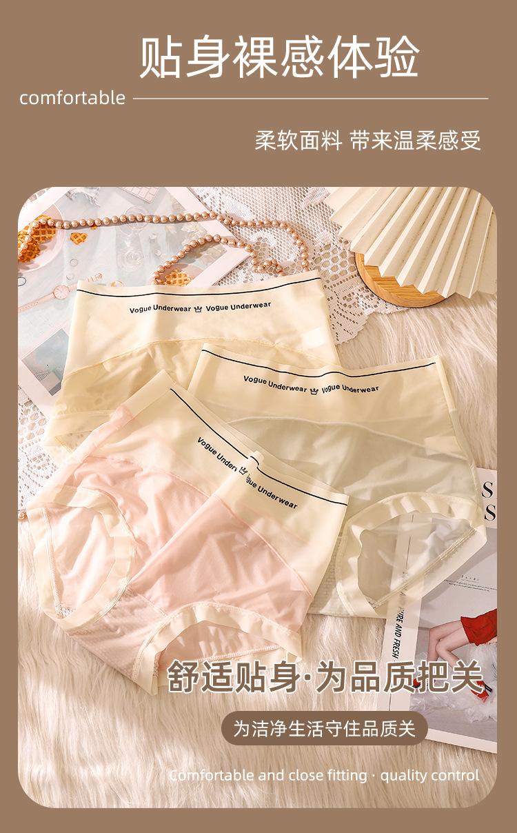 Ropa interior ultrafina con máscara de seda de hielo para mujer, caja de regalo, bragas de cintura alta transpirables con letras en la cintura para niña, venta al por mayor