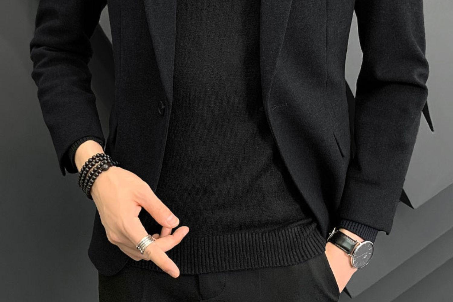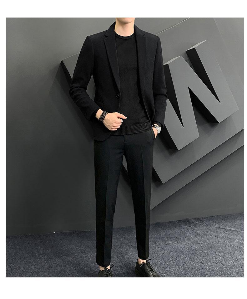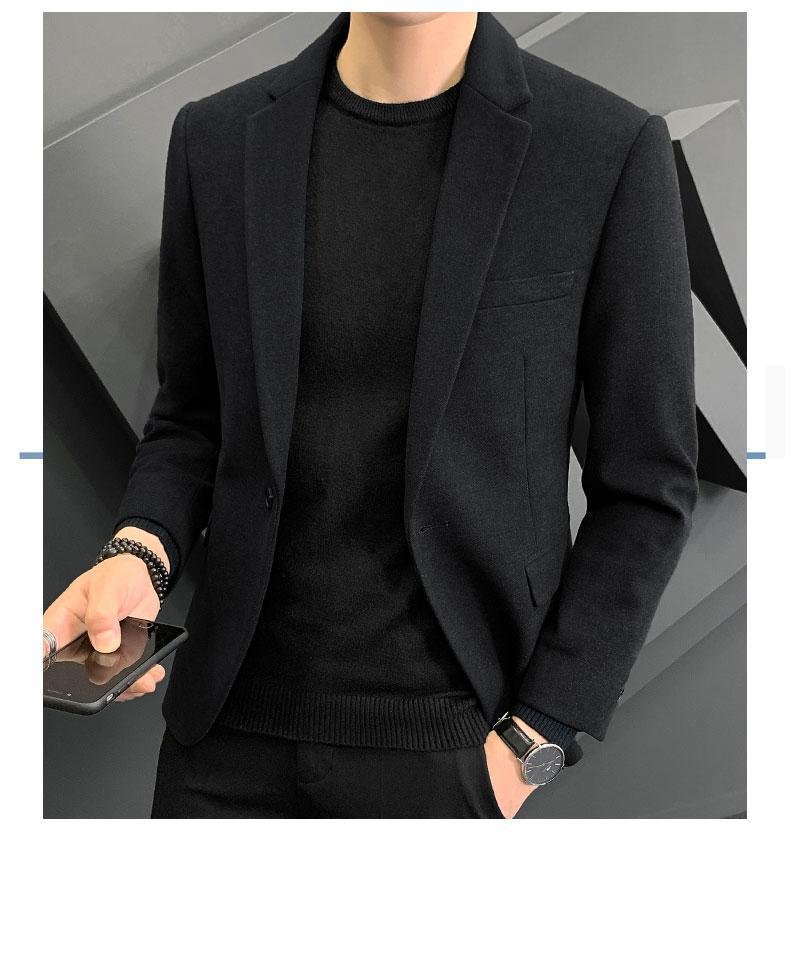 Traje Casual traje de Hombre Engrosado Ajustado Moda Coreana Guapo Otoño e Invierno Abrigo de Traje Pequeño de Lana