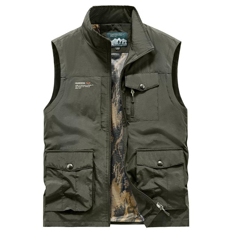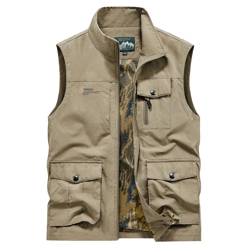 Chaleco deportivo multibolsillos para exteriores, para primavera y otoño, para hombre de mediana edad, impermeable, de secado rápido, informal, para comercio exterior transfronterizo.