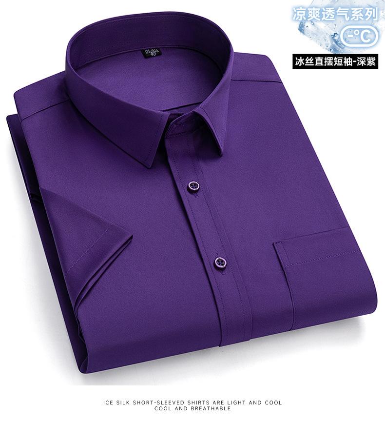 L ice silk straight short sleeves-dark purple