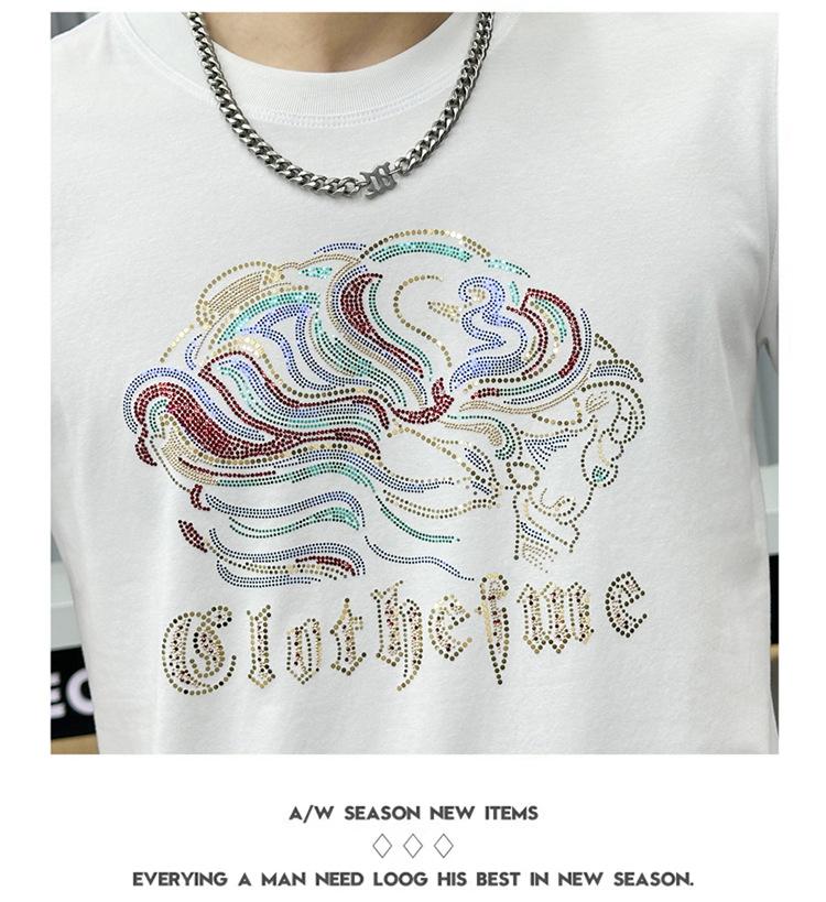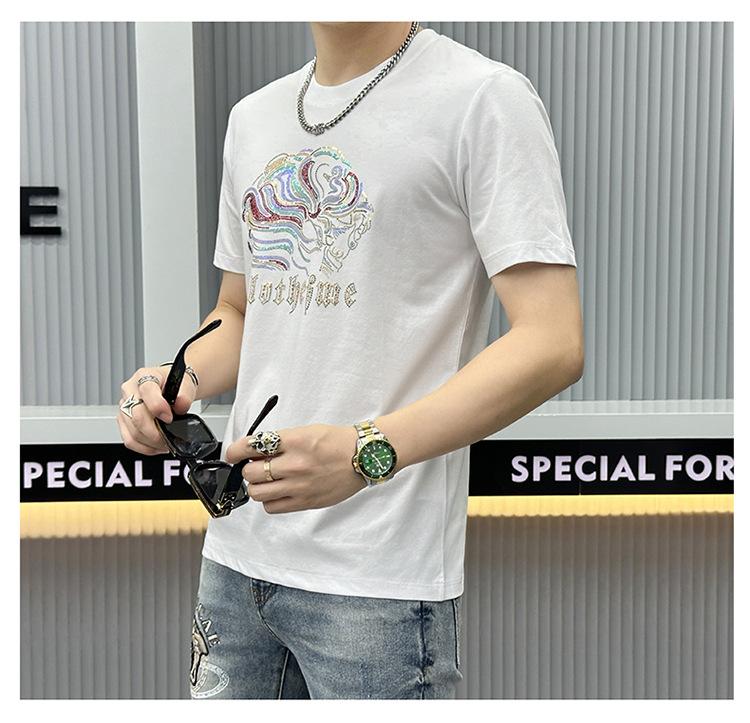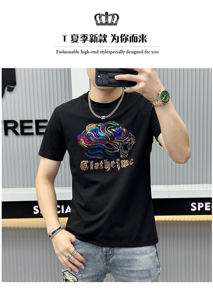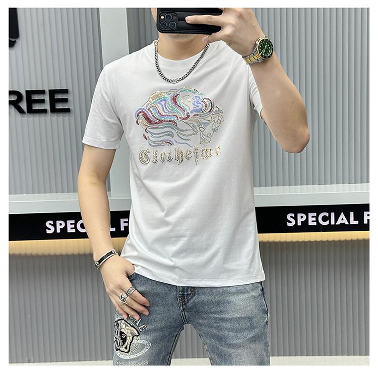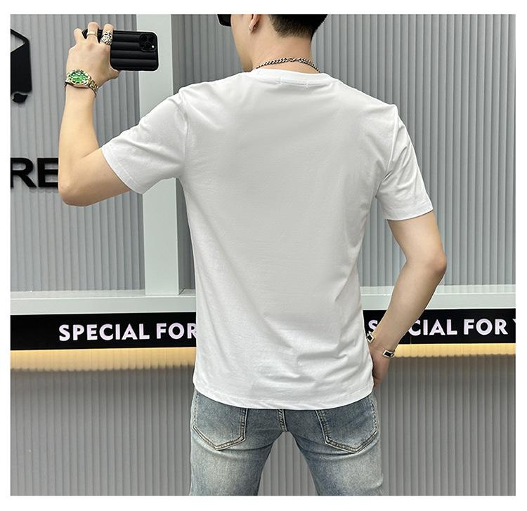 Compra Camiseta de manga corta de algodón mercerizado para hombre, nueva camiseta de verano de 2024 con perforación en caliente, de media manga, de marca de moda europea y americana, con cuello redondo ajustado, estilo estación europea al por mayor en Joom.pro