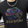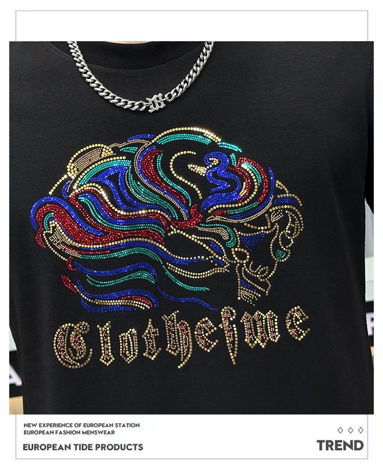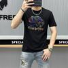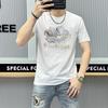 Camiseta de manga corta de algodón mercerizado para hombre, nueva camiseta de verano de 2024 con perforación en caliente, de media manga, de marca de moda europea y americana, con cuello redondo ajustado, estilo estación europea