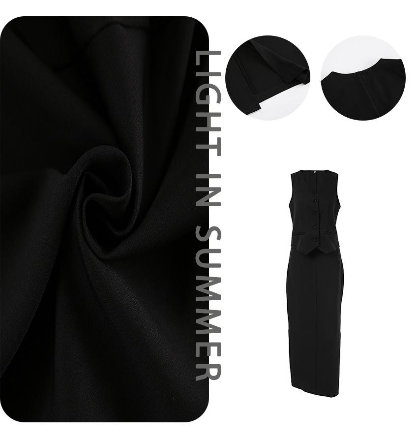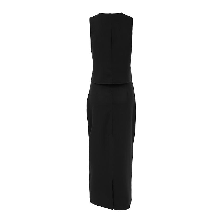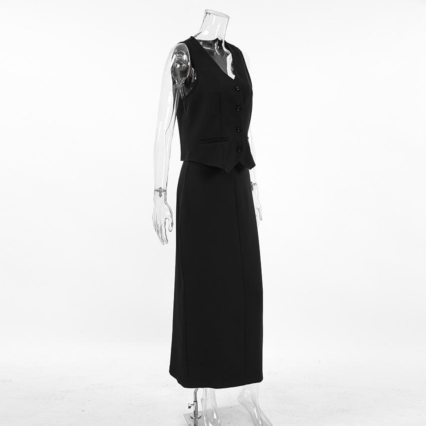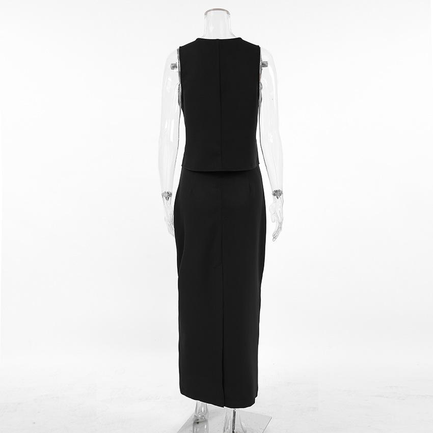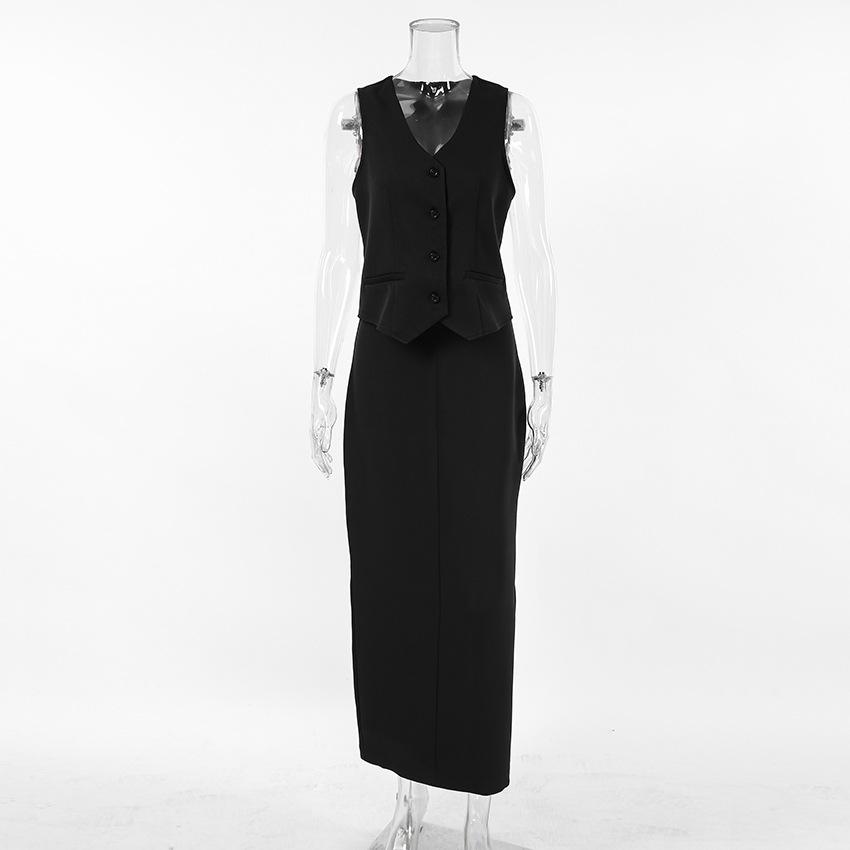 Traje casual negro sencillo dividido con diseño europeo y americano, nuevo traje de dos piezas ajustado de verano y otoño 2024.